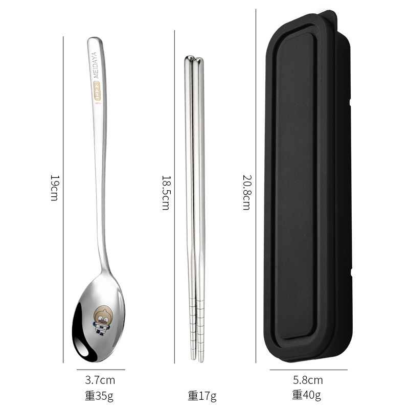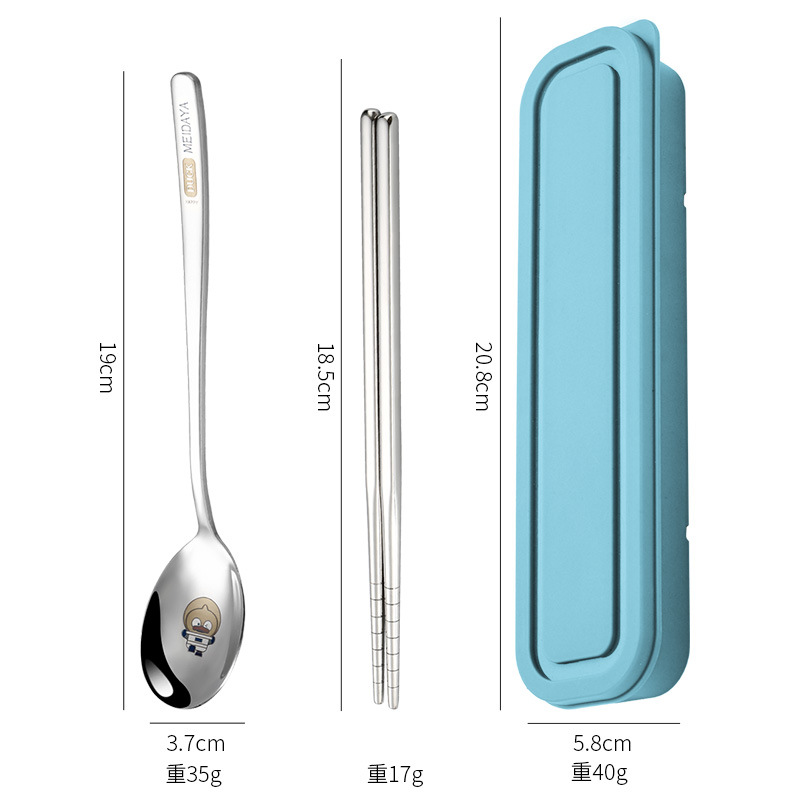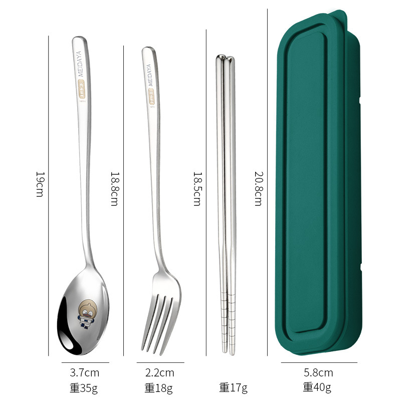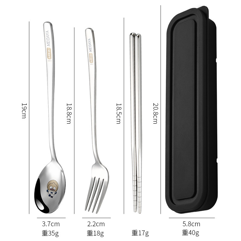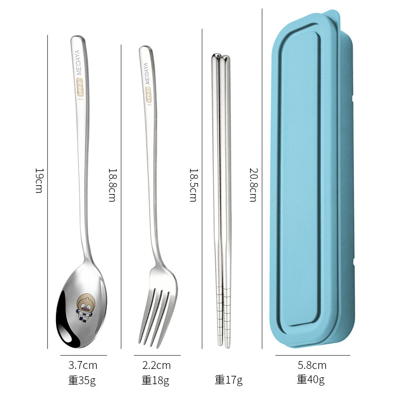 휴대용 식기 크리 에이 티브 레이저 스테인레스 스틸 젓가락 숟가락 세트 학생 식기 젓가락 포크 스푼 3 피스 보관함