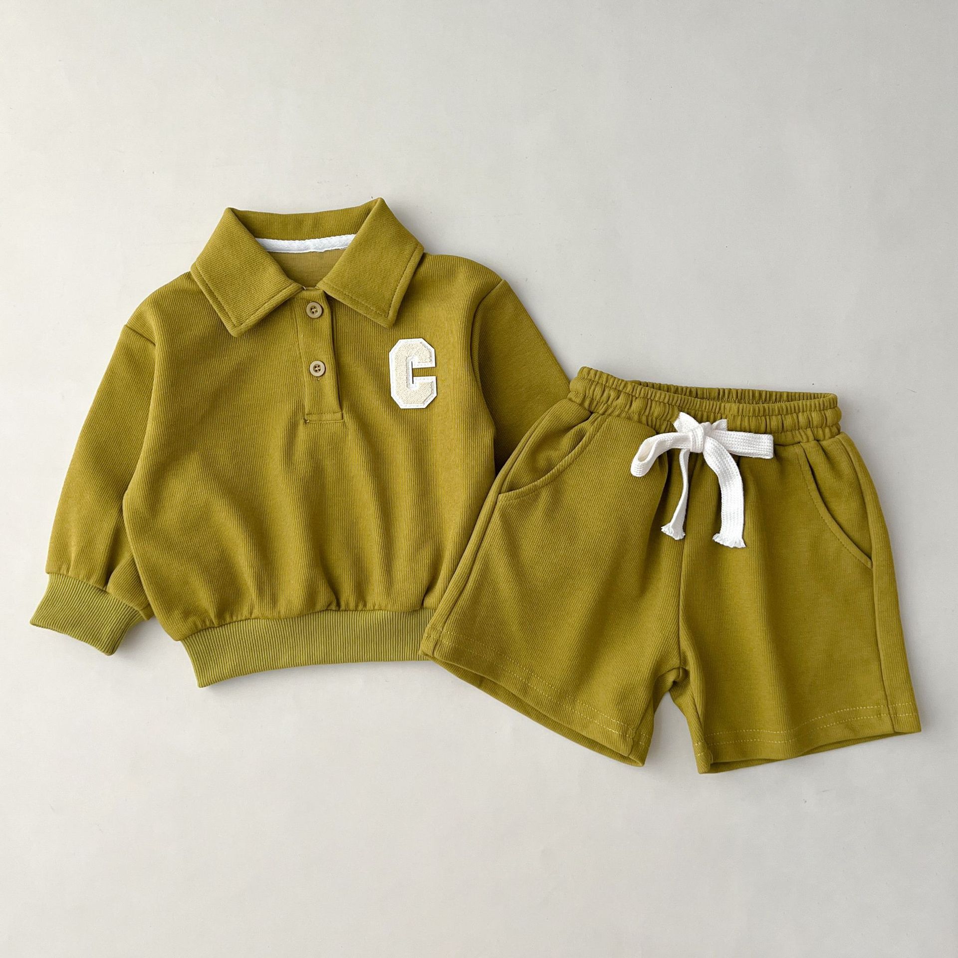 여아 한국식 세트 봄 신상 남녀 보물 아동 캐주얼 스포츠 반팔 스웨터 + 반바지 투피스 세트