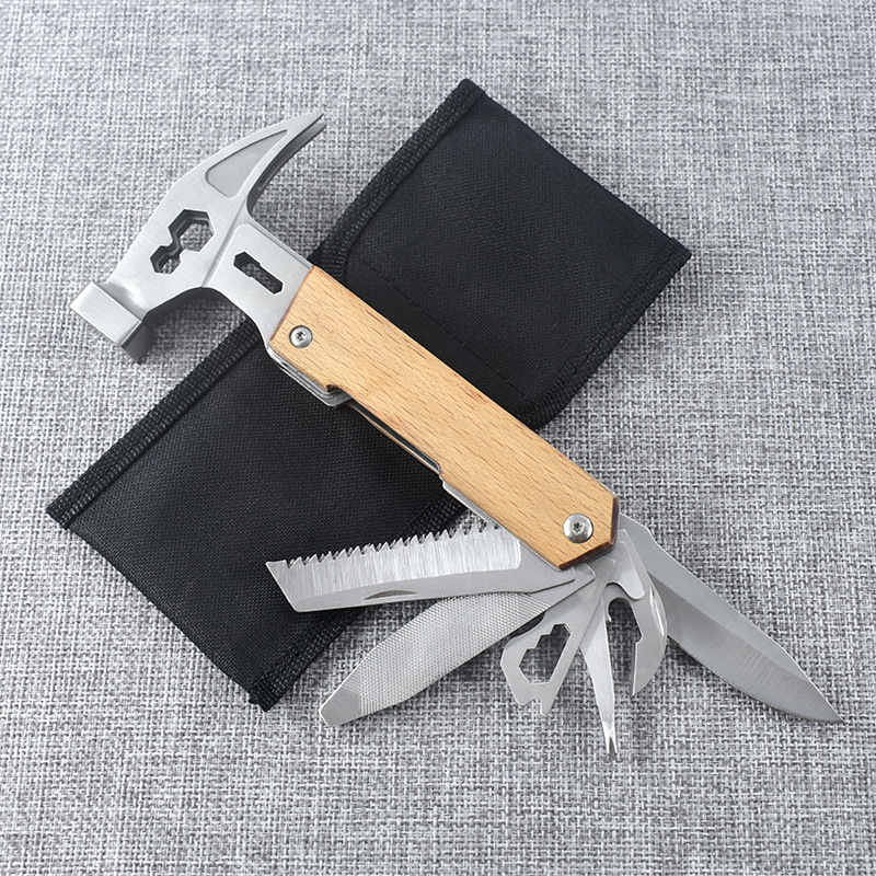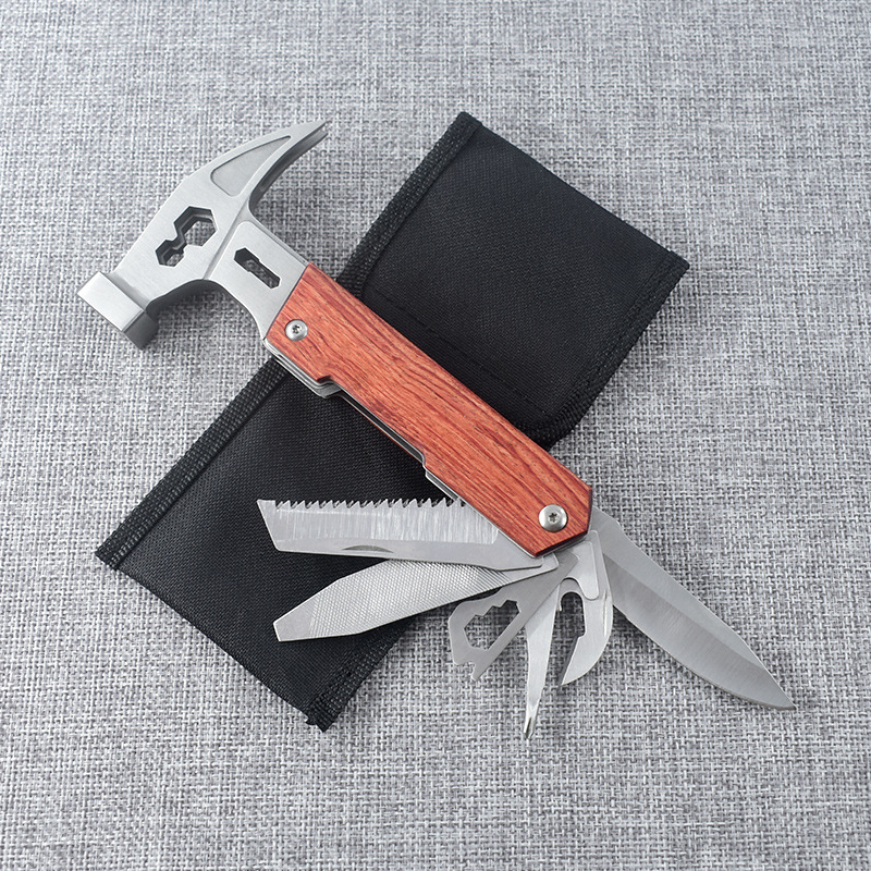 새로운 다기능 나무 손잡이 클로 해머 스테인레스 스틸 캠핑 텐트 네일 해머 야외 휴대용 생존 장비