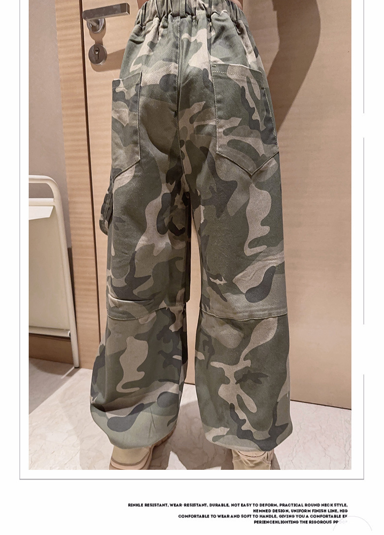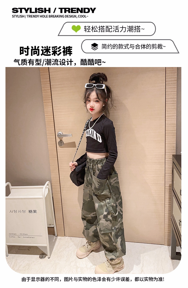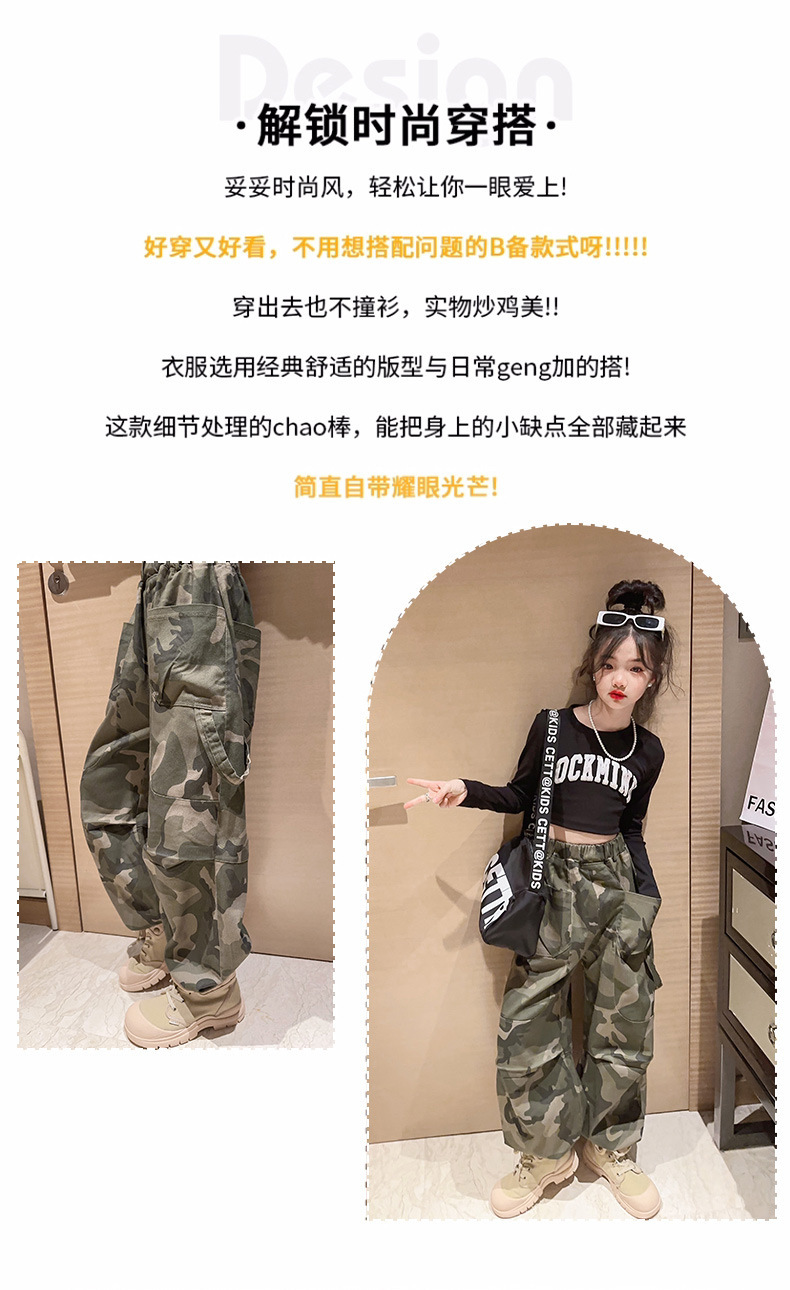 2023 새 여아 바지 봄 캐주얼 스포츠 어린이 위장 바지 큰 어린이 발 바지 여아 위장 바지스토어 가기