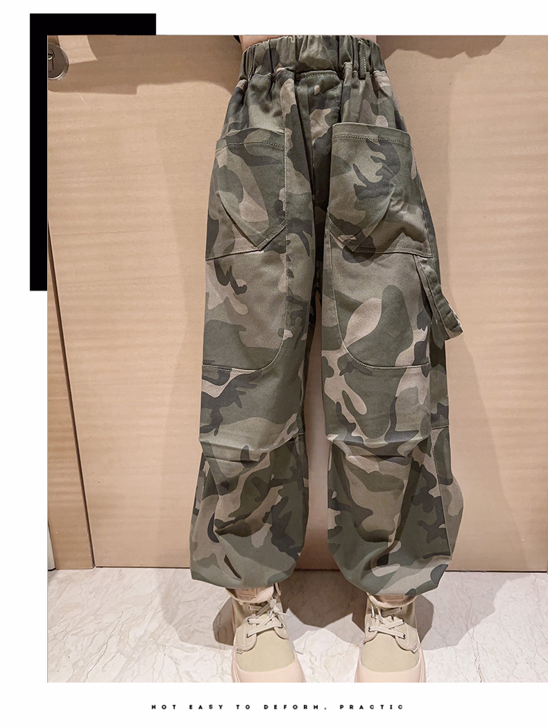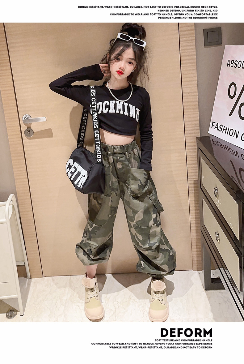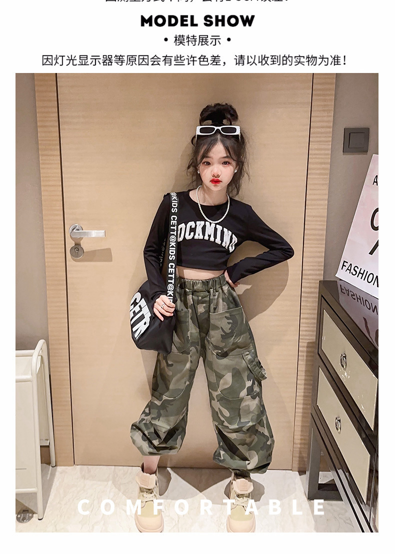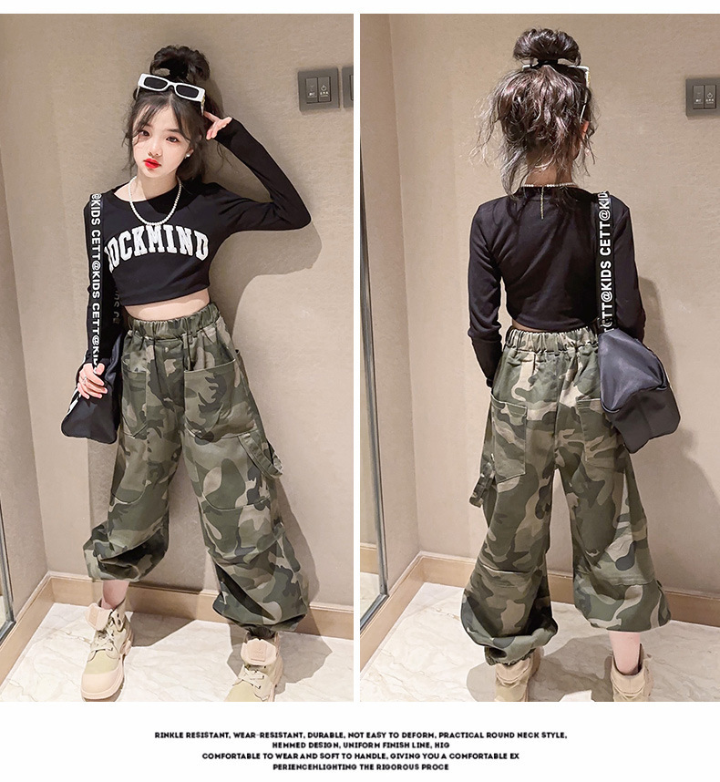 2023 새 여아 바지 봄 캐주얼 스포츠 어린이 위장 바지 큰 어린이 발 바지 여아 위장 바지스토어 가기