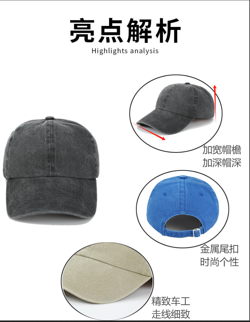 야구 모자 워싱 빈티지 스타일 맞춤 로고 순면 워싱 빈티지 모자 한국 스타일 워싱 캡 남녀 공용 모자스토어 가기