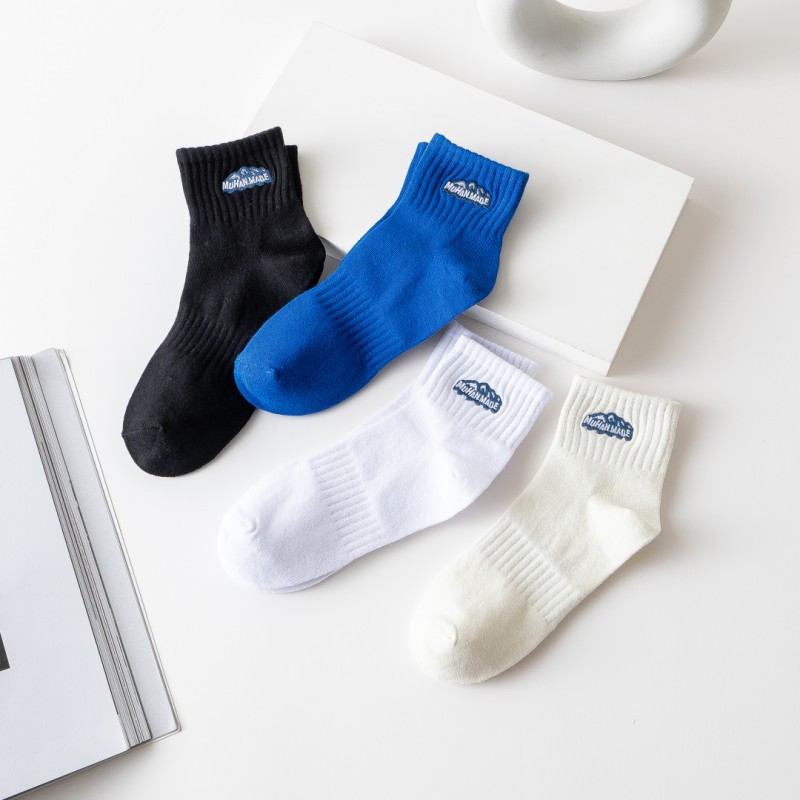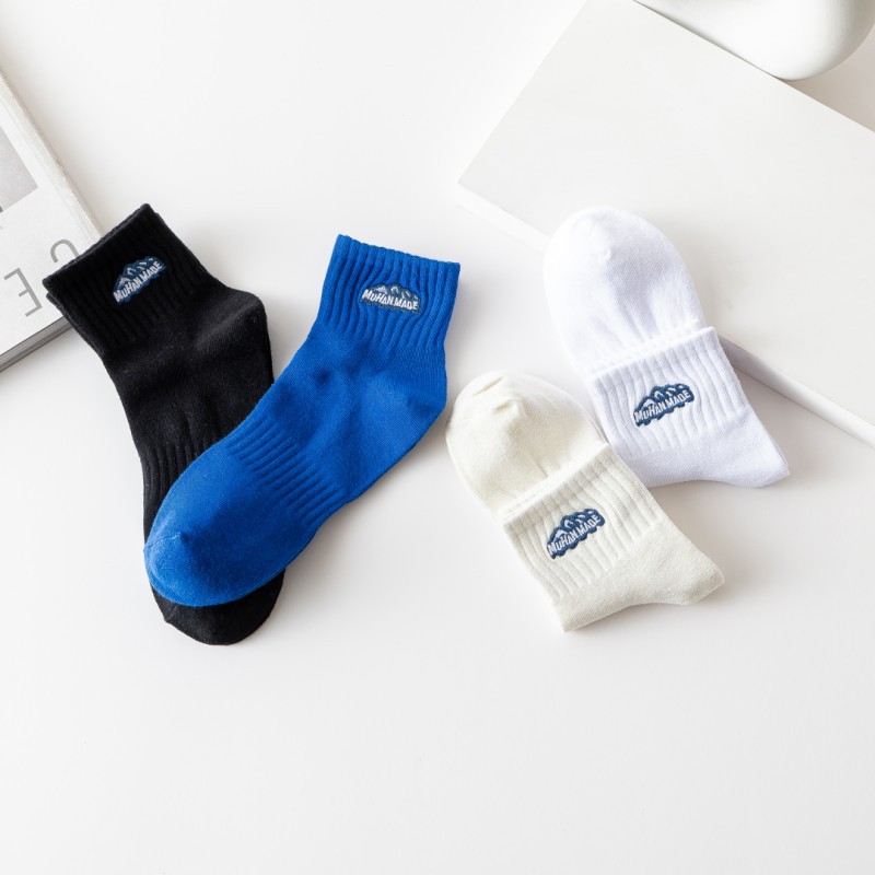 새로운 자수 양말 남성용 짧은 양말 봄과 가을 허리 짧은 튜브 양말 타이드 브랜드 단색 면 양말 통기성 땀 흡수 보트 양말 도매스토어 가기