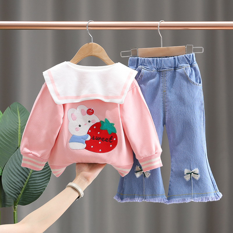 봄과 가을 세트 아동 의류 서양 아기 소녀의 봄 의류 캐주얼 의류 레인보우 토끼 소녀의 쓰리 피스 세트 유행스토어 가기