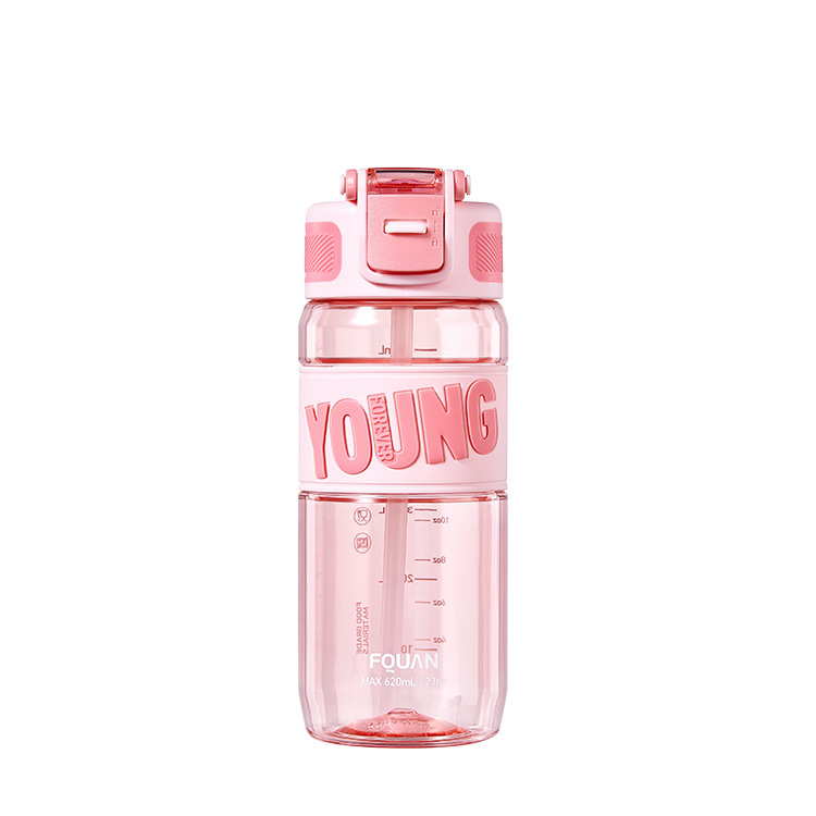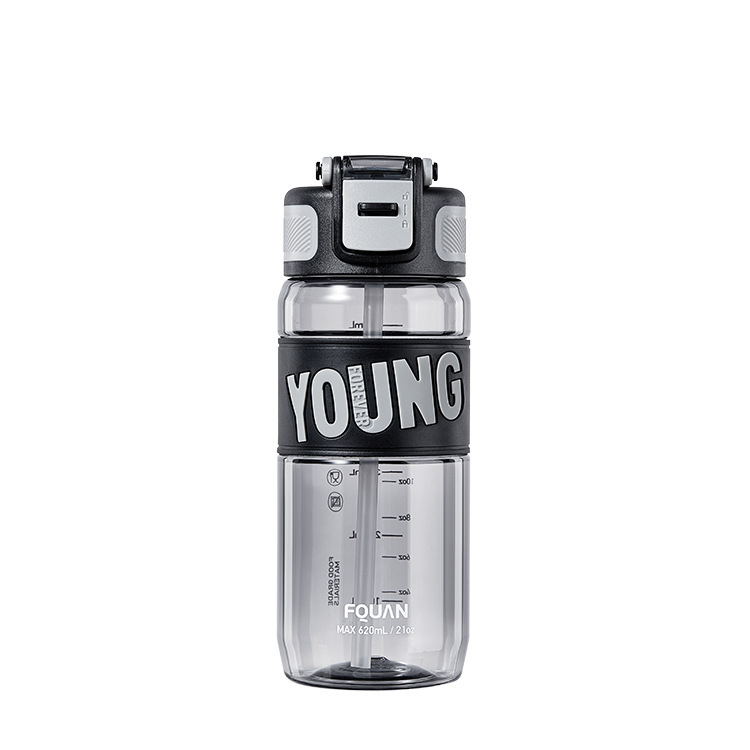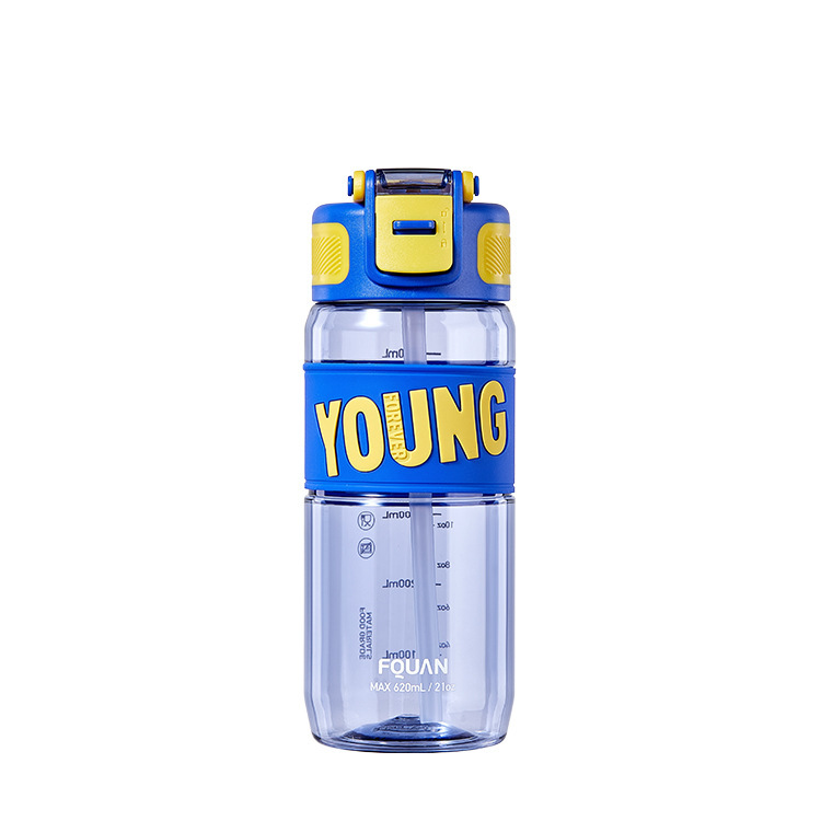 Fuquan 물 컵 시원한 음악 스포츠 컵 트라이탄 소재 플라스틱 컵 휴대용 바운스 컵 뚜껑 남녀 학생 한모금 컵