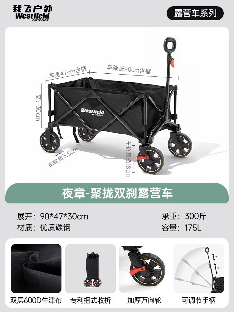 I 플라이 캠퍼 카 야외 캠프 카 접이식 카트 캠핑 트레일러 피크닉 카 휴대용 큰 카트 모여 흑화스토어 가기
