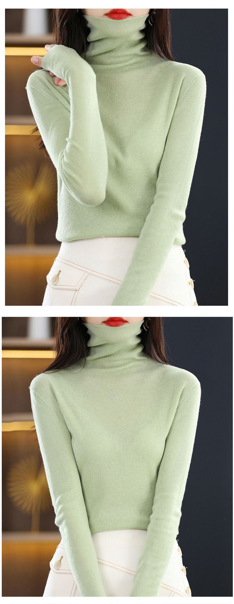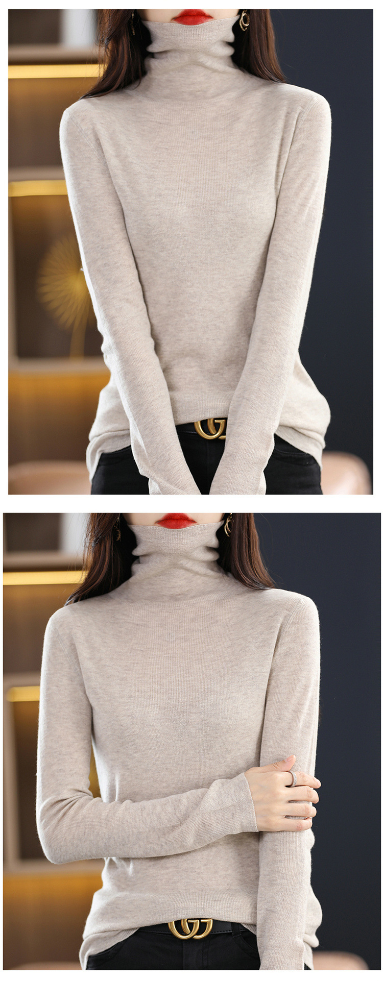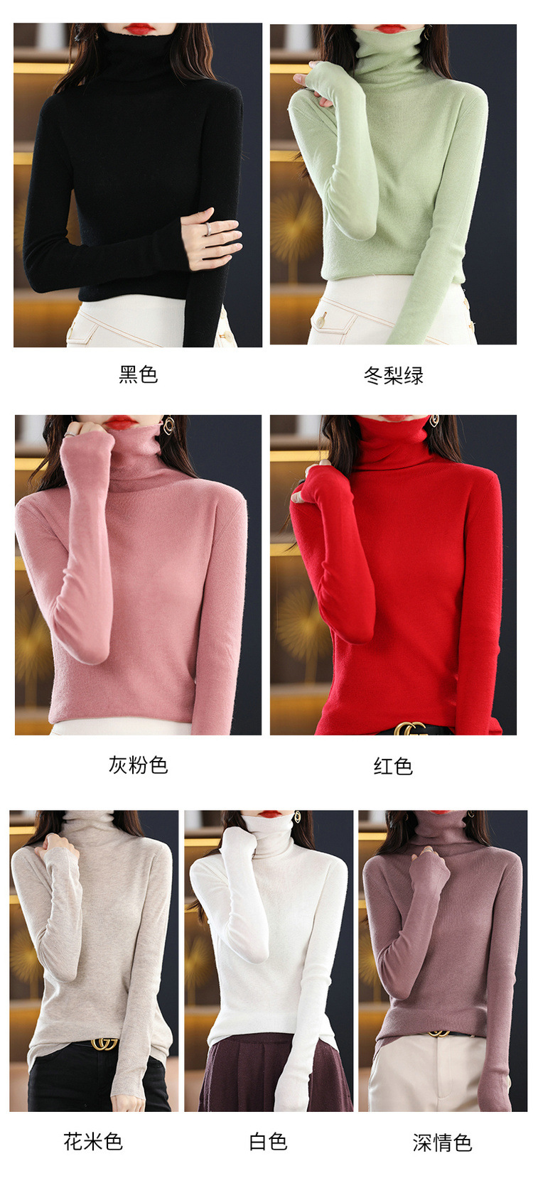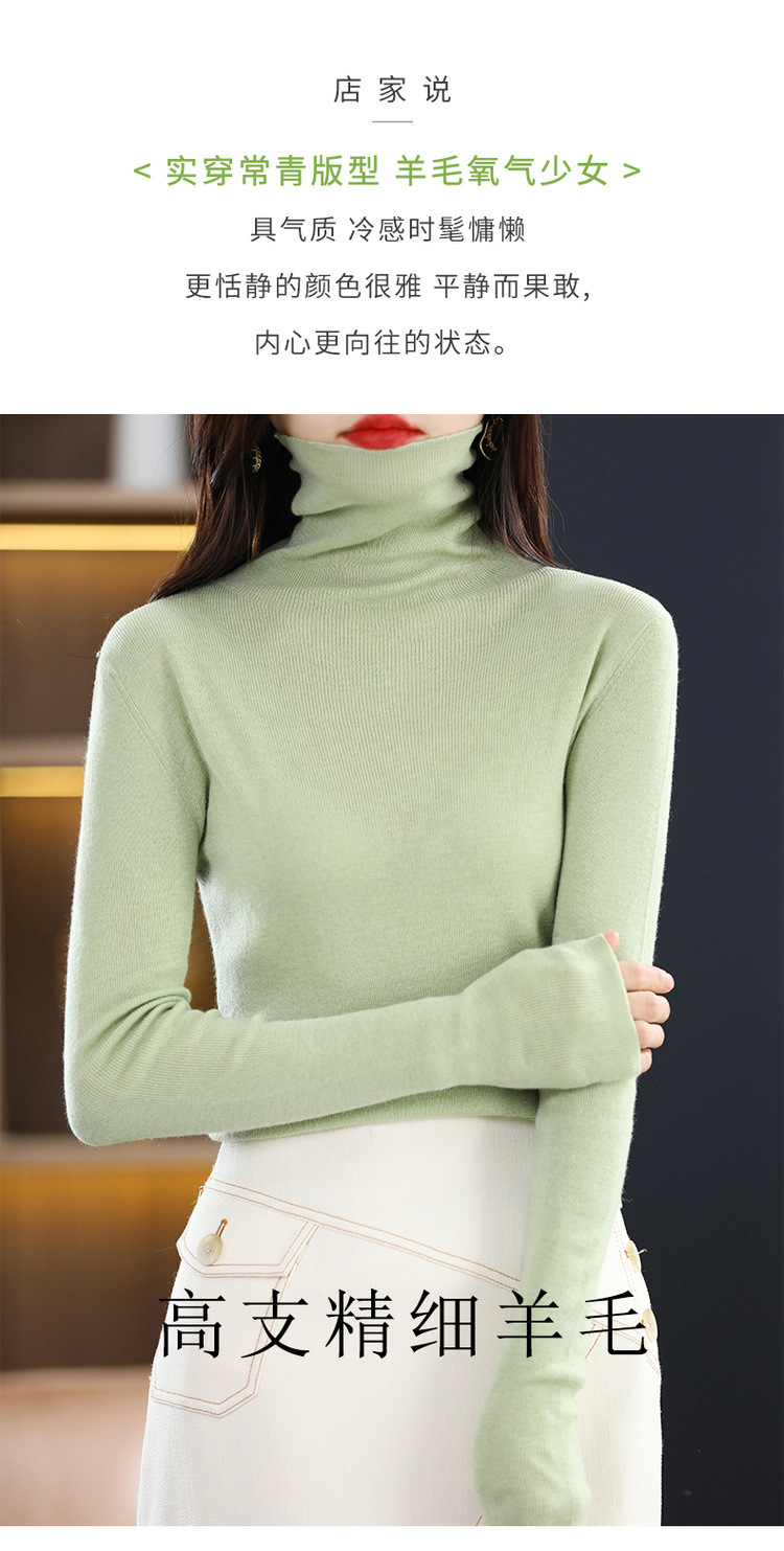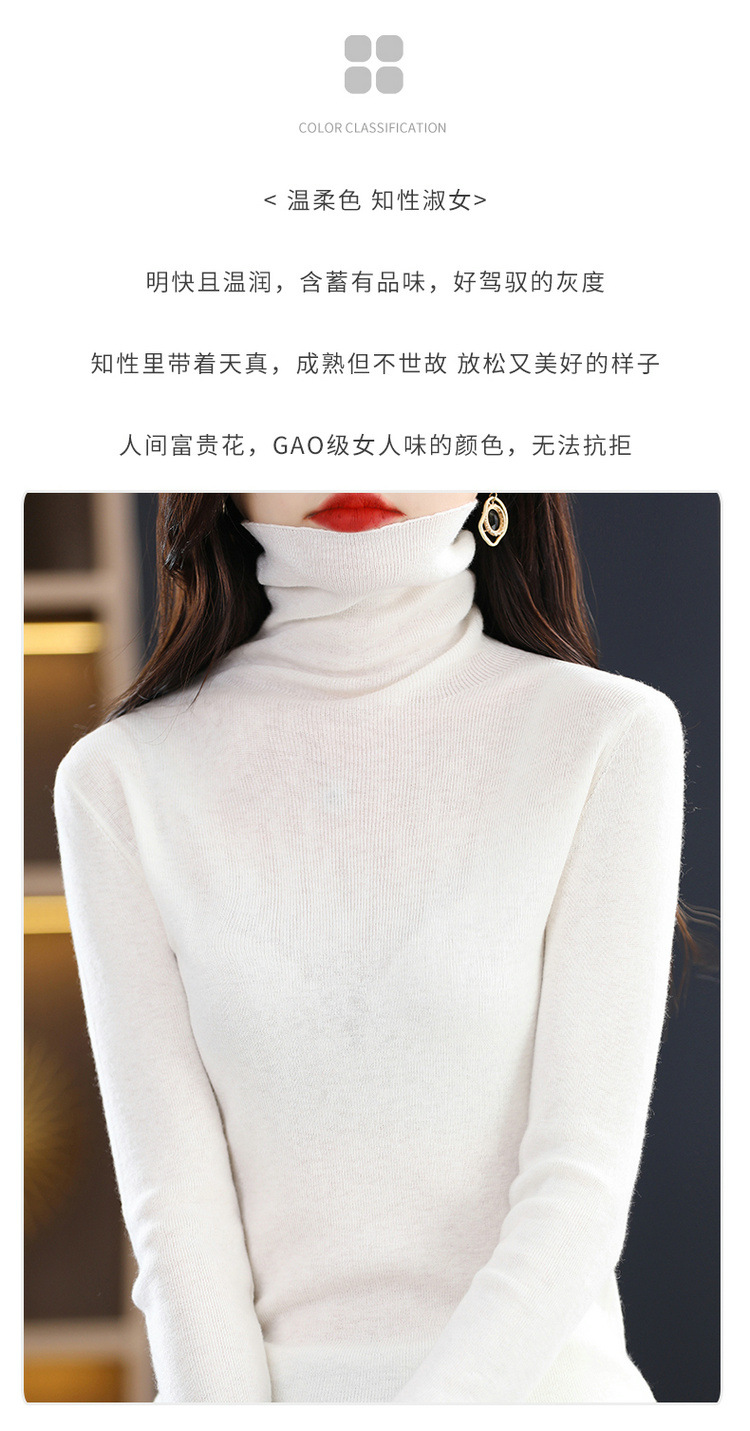 2023 신상품 최악의 봄과 가을 풀오버 니트 터틀넥 베이스 셔츠 여성용 슬림핏 얇은 울 마이크로 파일 칼라 스웨터스토어 가기