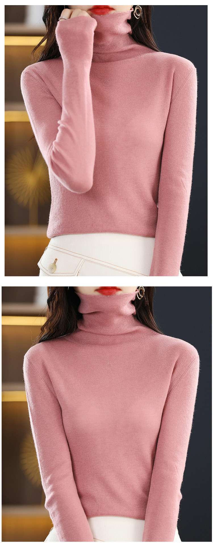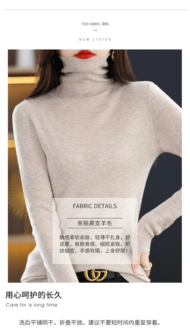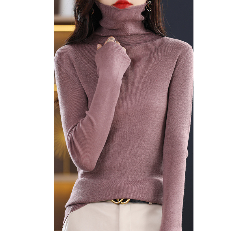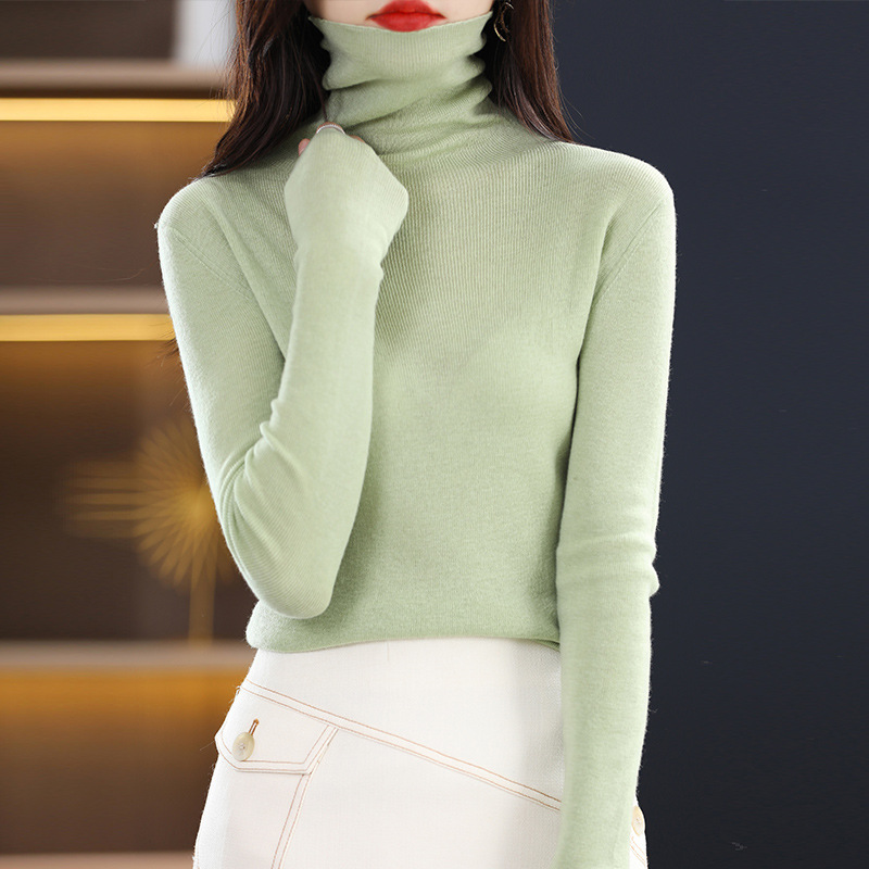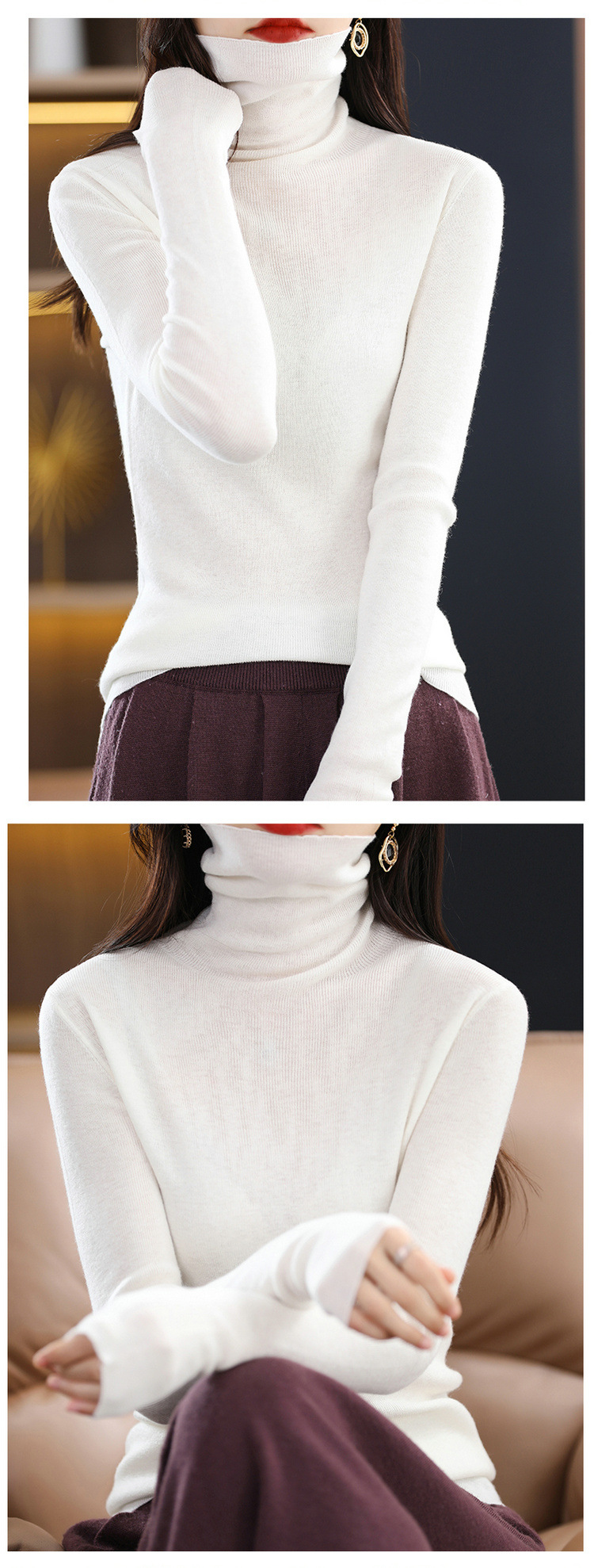 2023 신상품 최악의 봄과 가을 풀오버 니트 터틀넥 베이스 셔츠 여성용 슬림핏 얇은 울 마이크로 파일 칼라 스웨터스토어 가기
