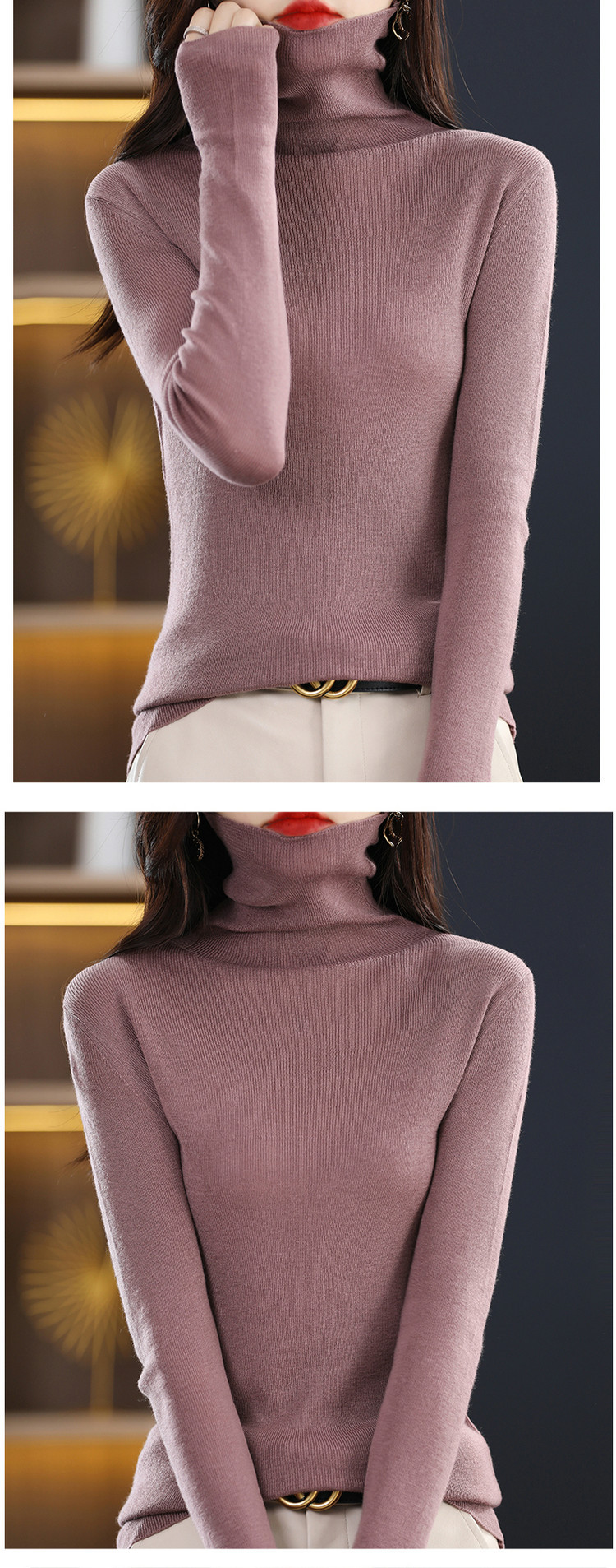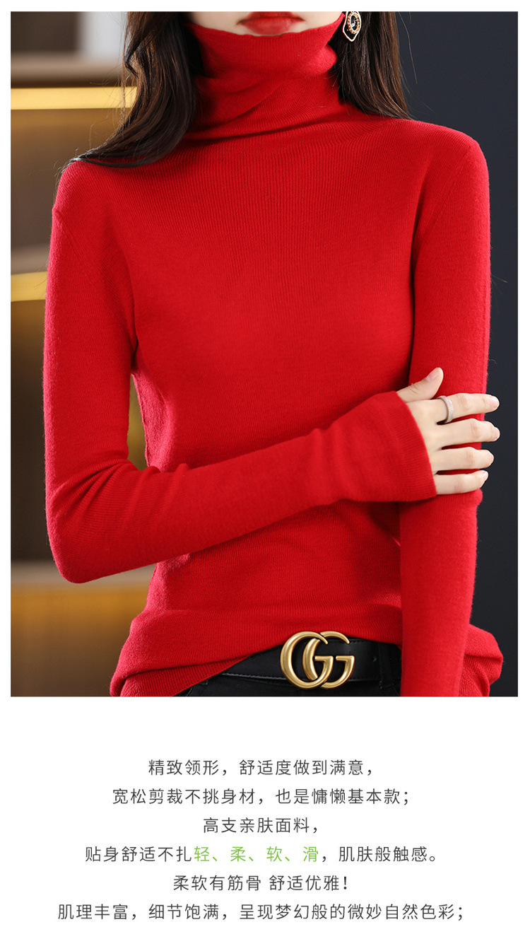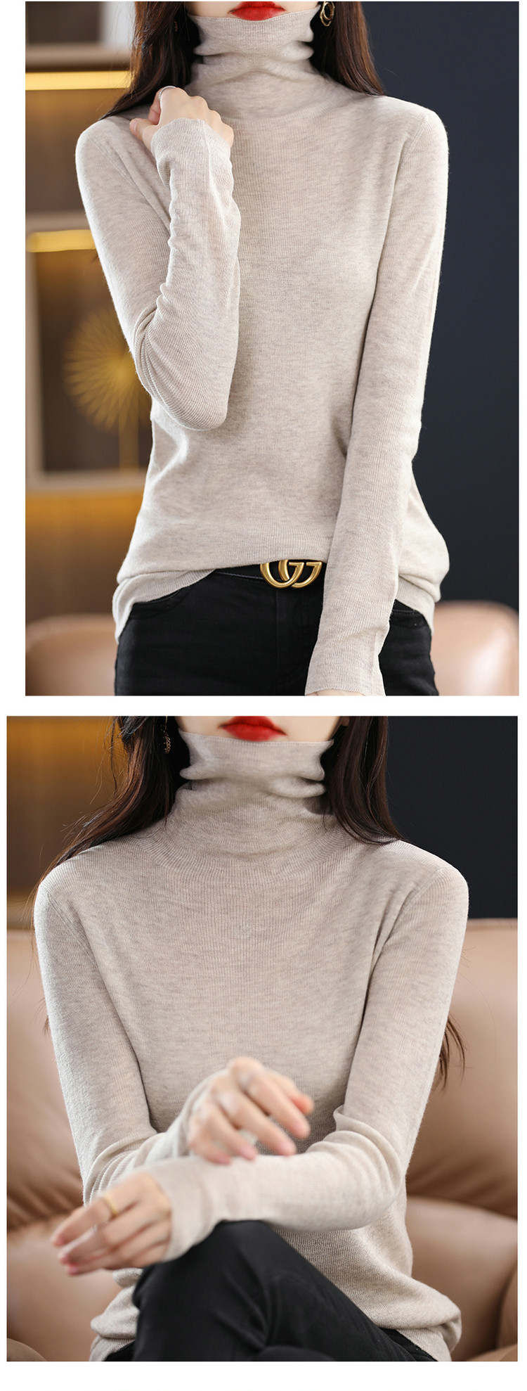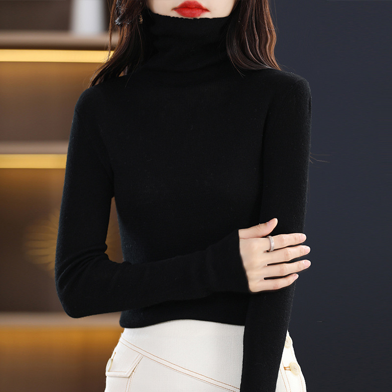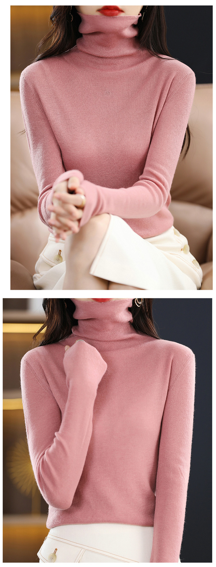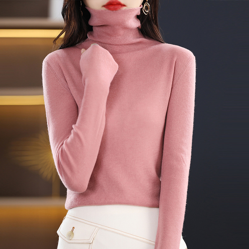 2023 신상품 최악의 봄과 가을 풀오버 니트 터틀넥 베이스 셔츠 여성용 슬림핏 얇은 울 마이크로 파일 칼라 스웨터스토어 가기