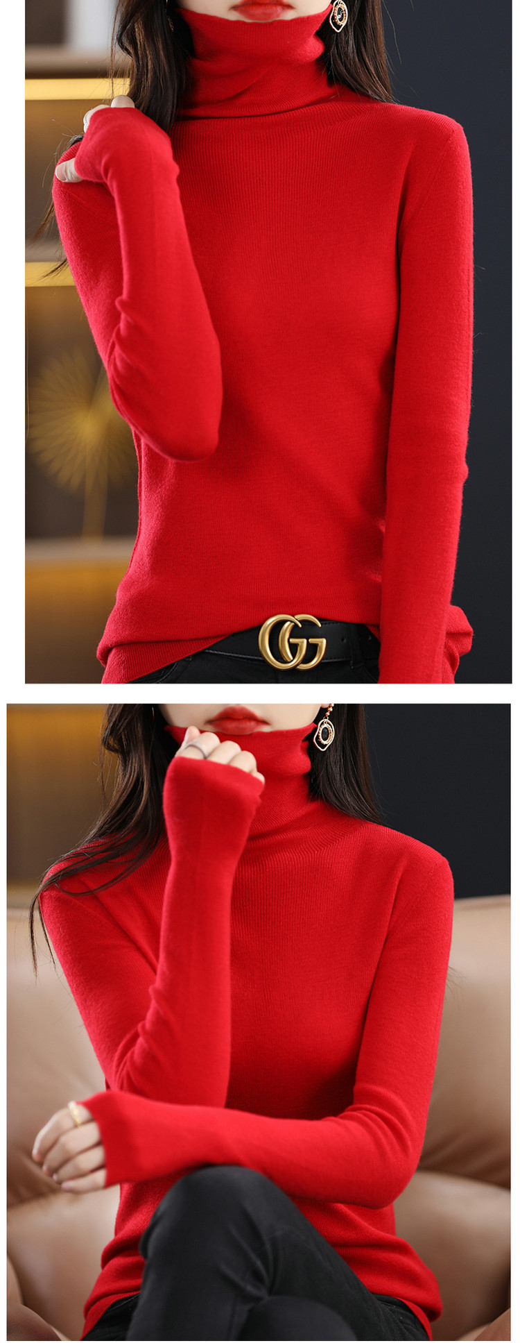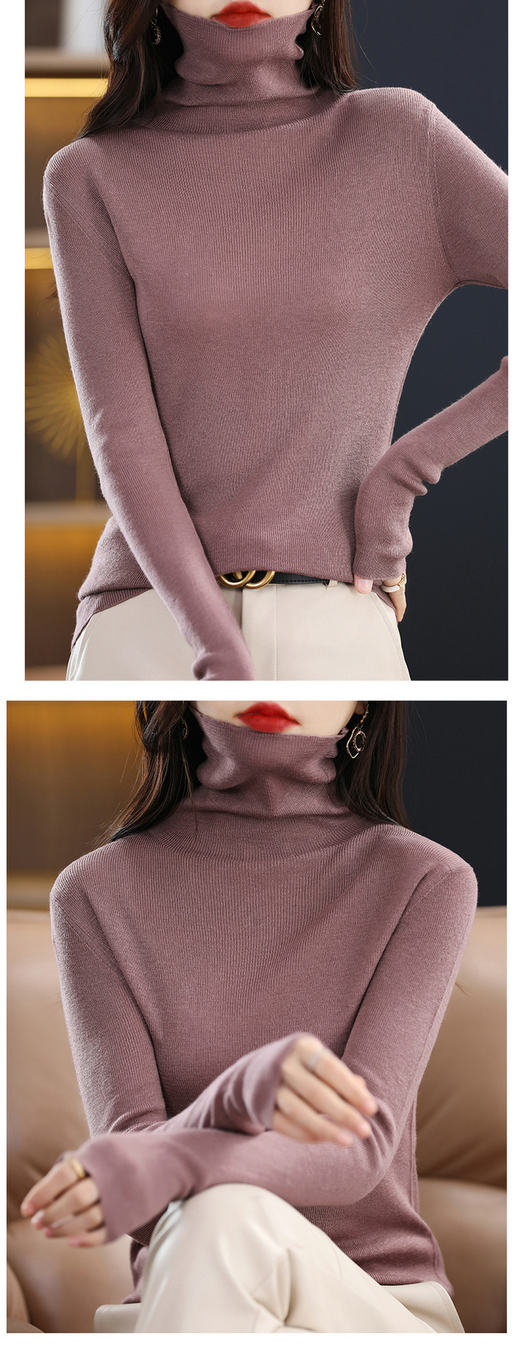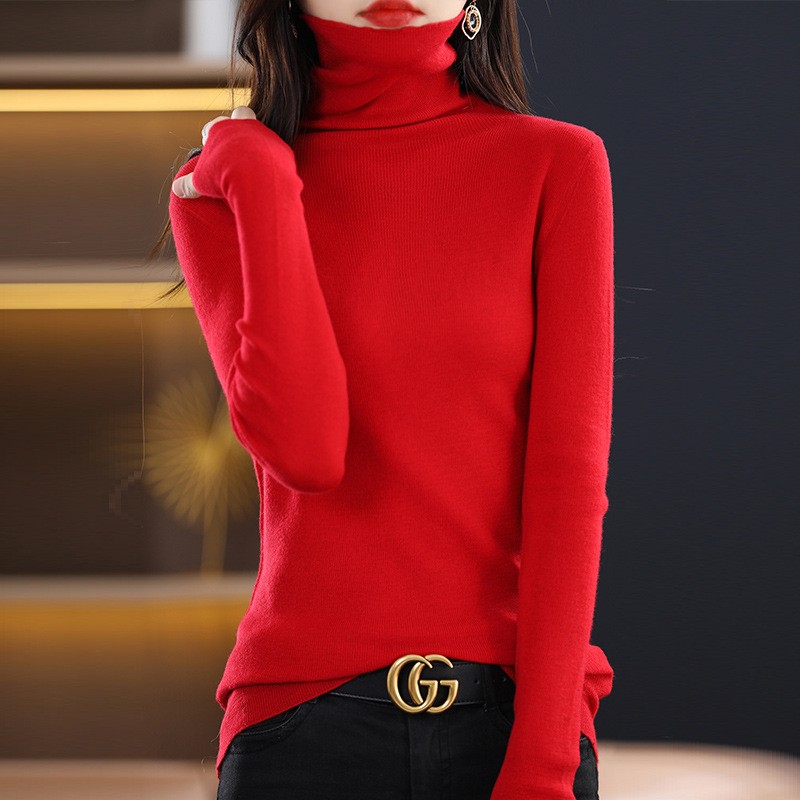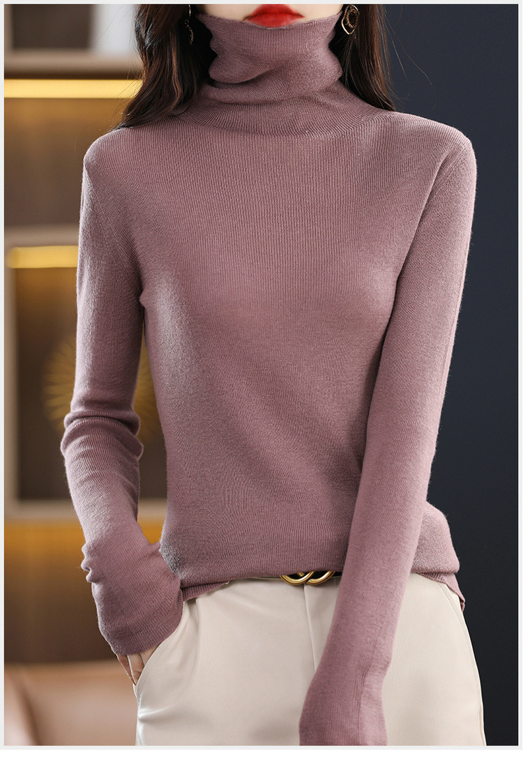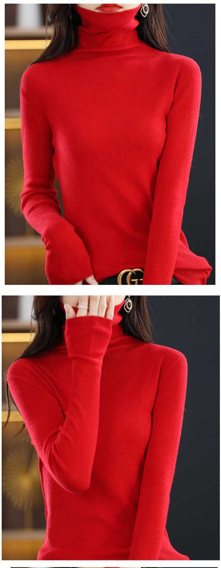 2023 신상품 최악의 봄과 가을 풀오버 니트 터틀넥 베이스 셔츠 여성용 슬림핏 얇은 울 마이크로 파일 칼라 스웨터스토어 가기