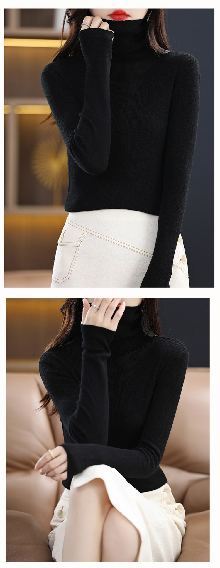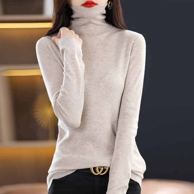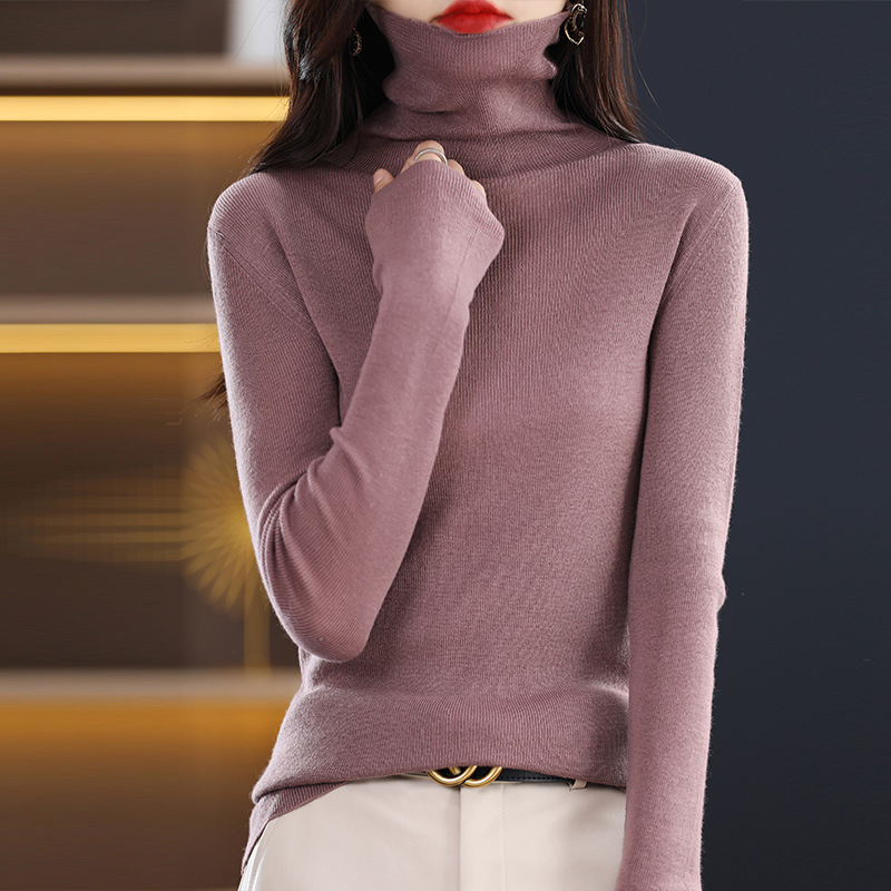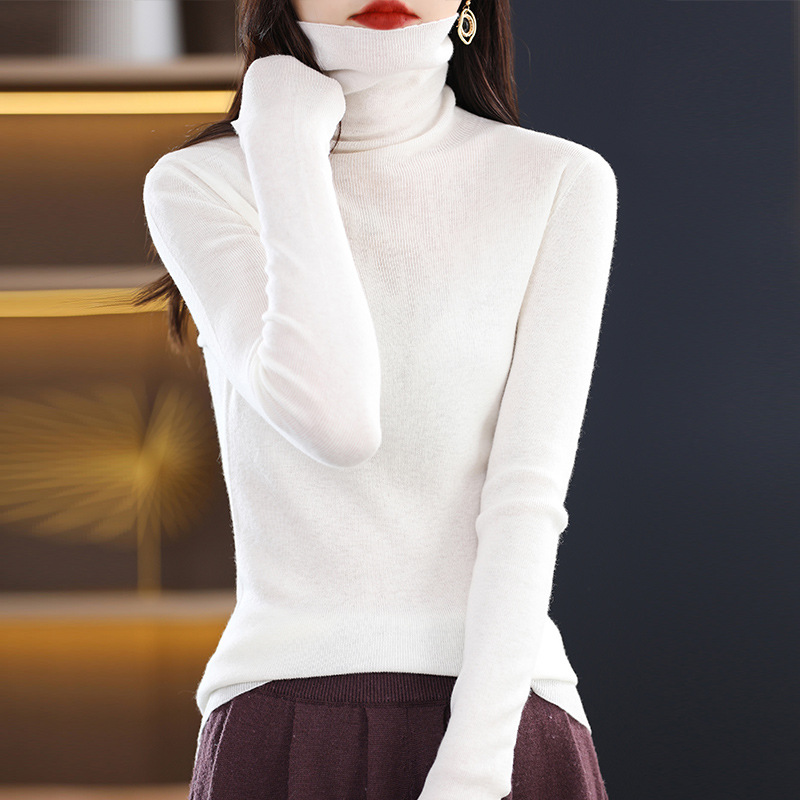 2023 신상품 최악의 봄과 가을 풀오버 니트 터틀넥 베이스 셔츠 여성용 슬림핏 얇은 울 마이크로 파일 칼라 스웨터