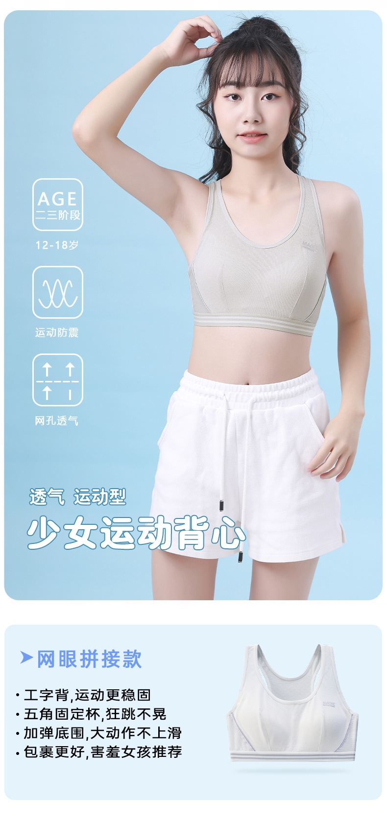 여아용 브라, 스포츠용 충격방지, 중학생 및 고등학생용, 작은 조끼형, 돌출방지 안감, 순면 속옷, 여아용스토어 가기