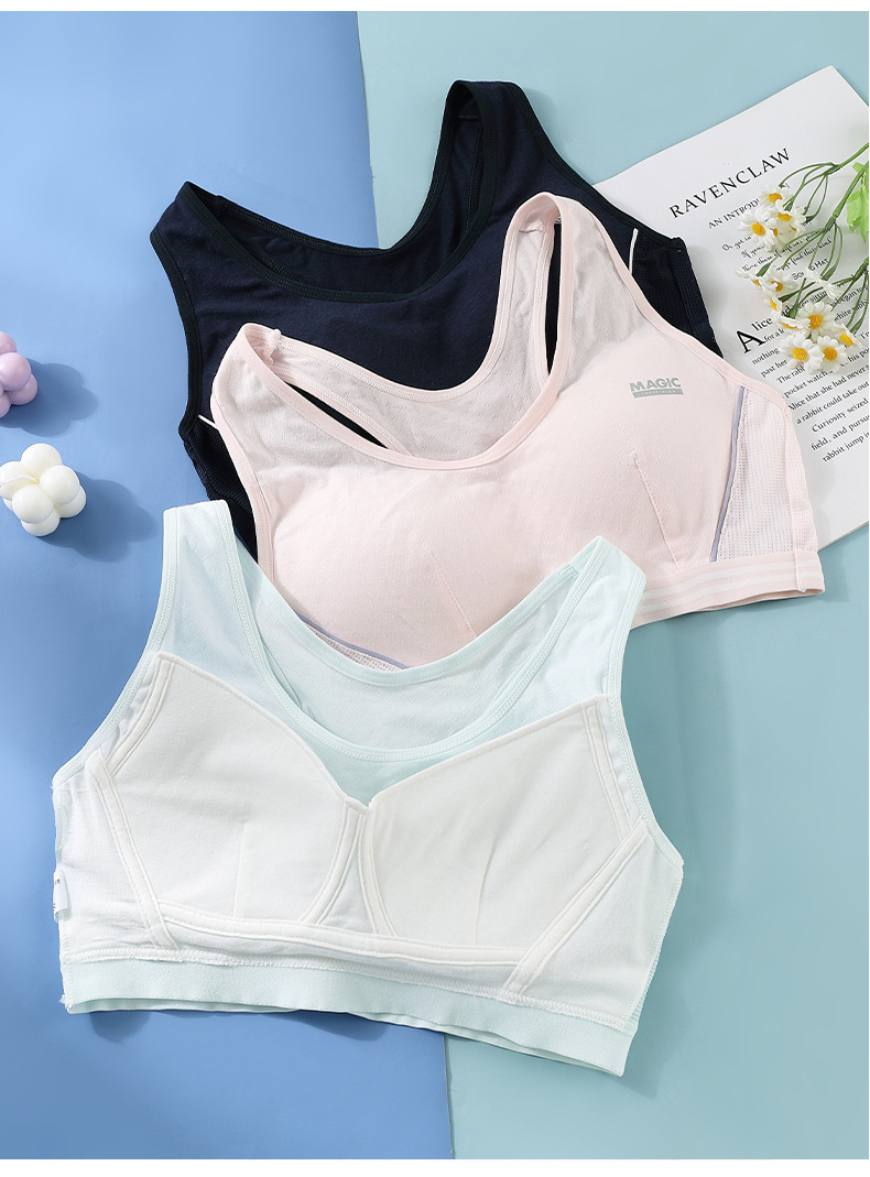 여아용 브라, 스포츠용 충격방지, 중학생 및 고등학생용, 작은 조끼형, 돌출방지 안감, 순면 속옷, 여아용