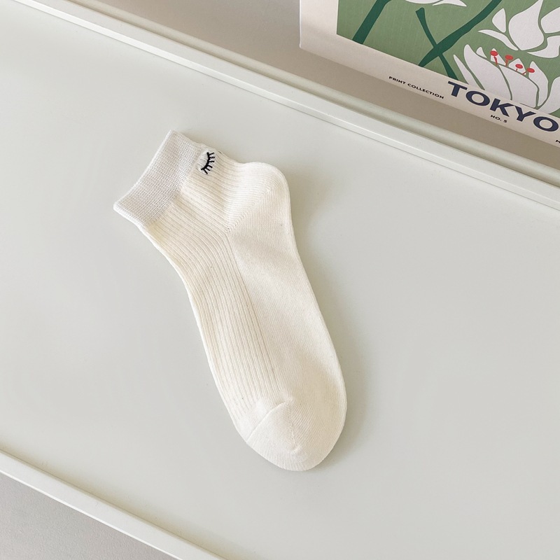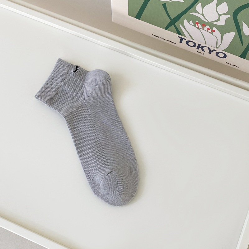 봄과 여름 단색 속눈썹 자수 일본 간단한 숙녀 양말 도매 한국 패션 보트 양말 여성 면화 여성 양말