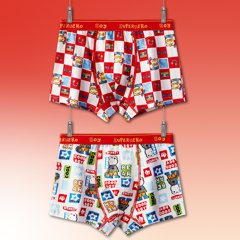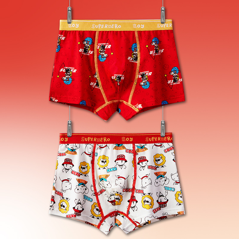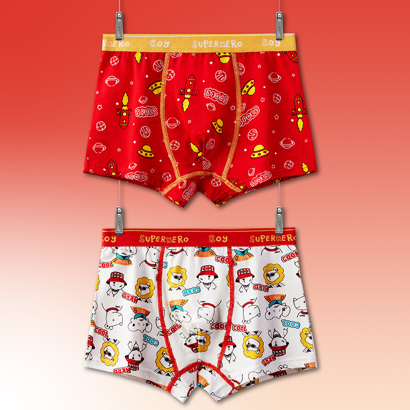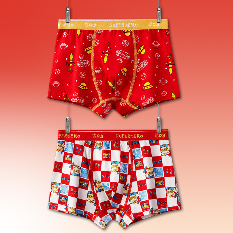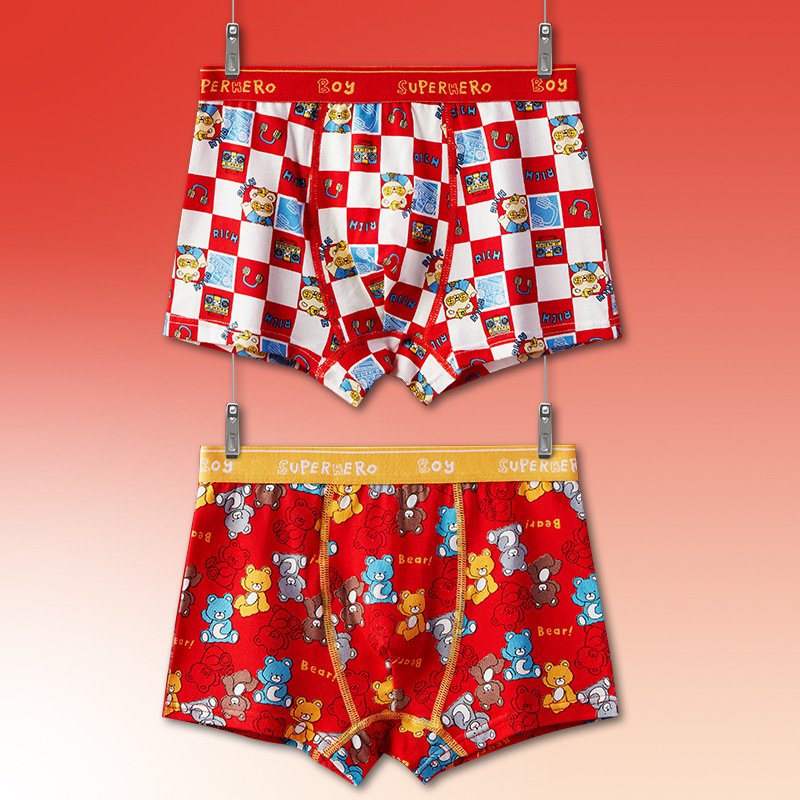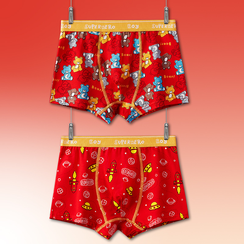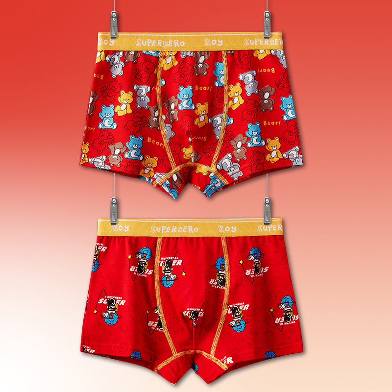 토끼띠 어린이용 남아 사각팬티 A급 면 소재 큰 빨간색 중대형 어린이 남아용 말띠 사각팬티