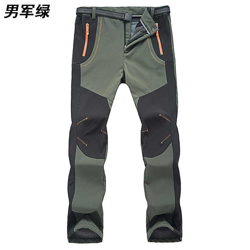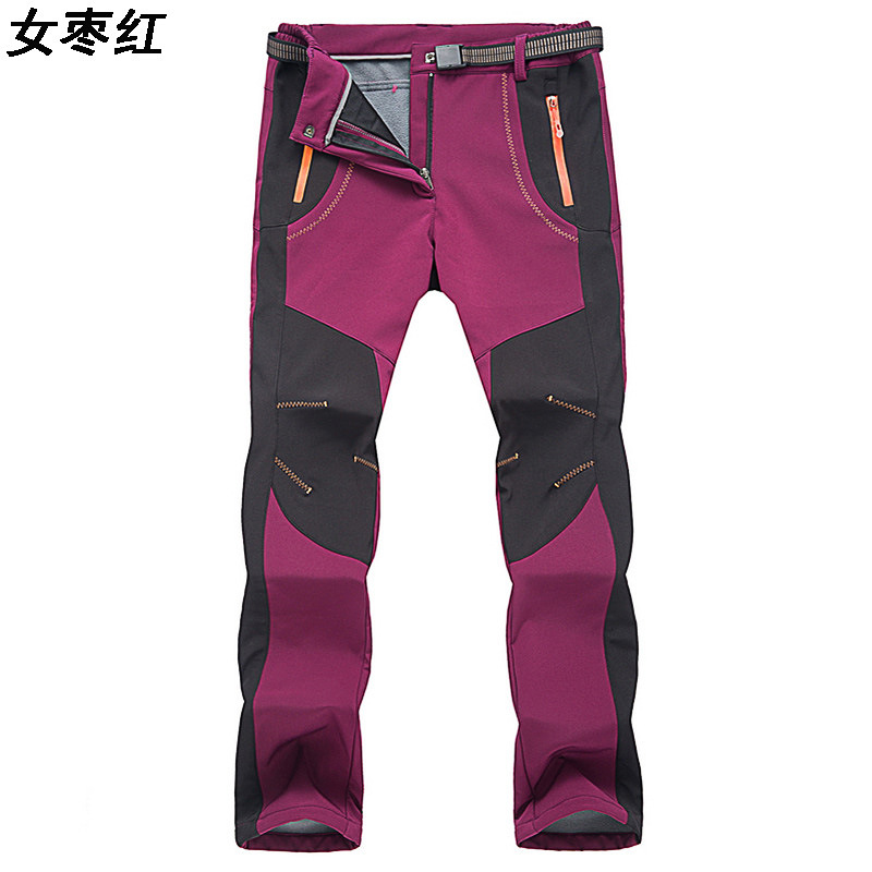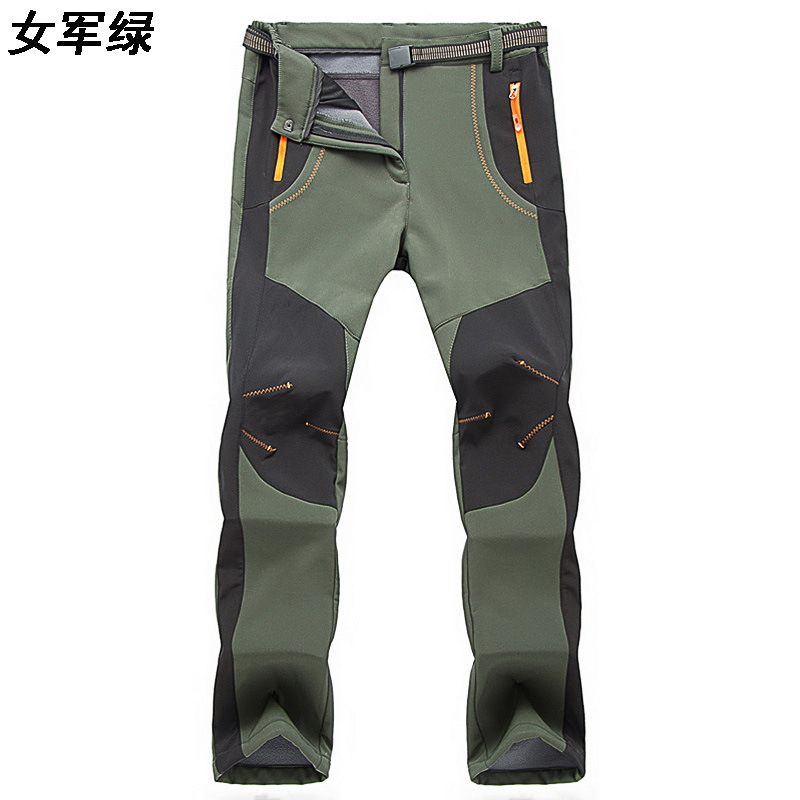 가을과 겨울 커플의 부드러운 쉘 바지 방풍 방수 스포츠 양털 바지 야외 기모 따뜻한 통기성 등산 바지 남성용