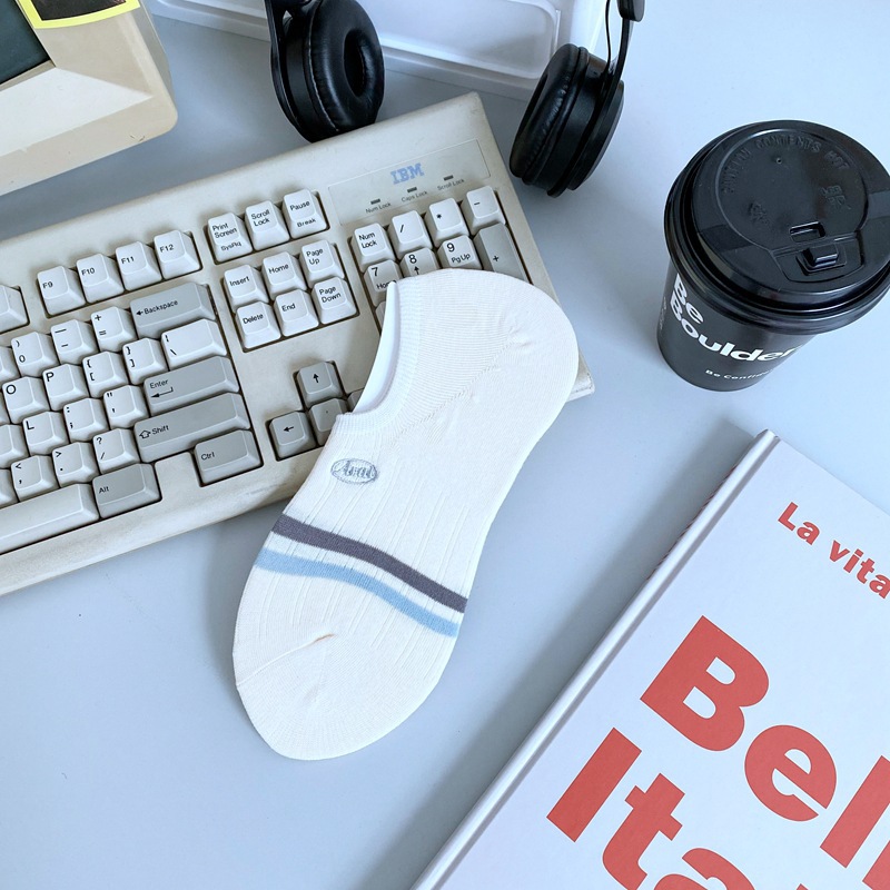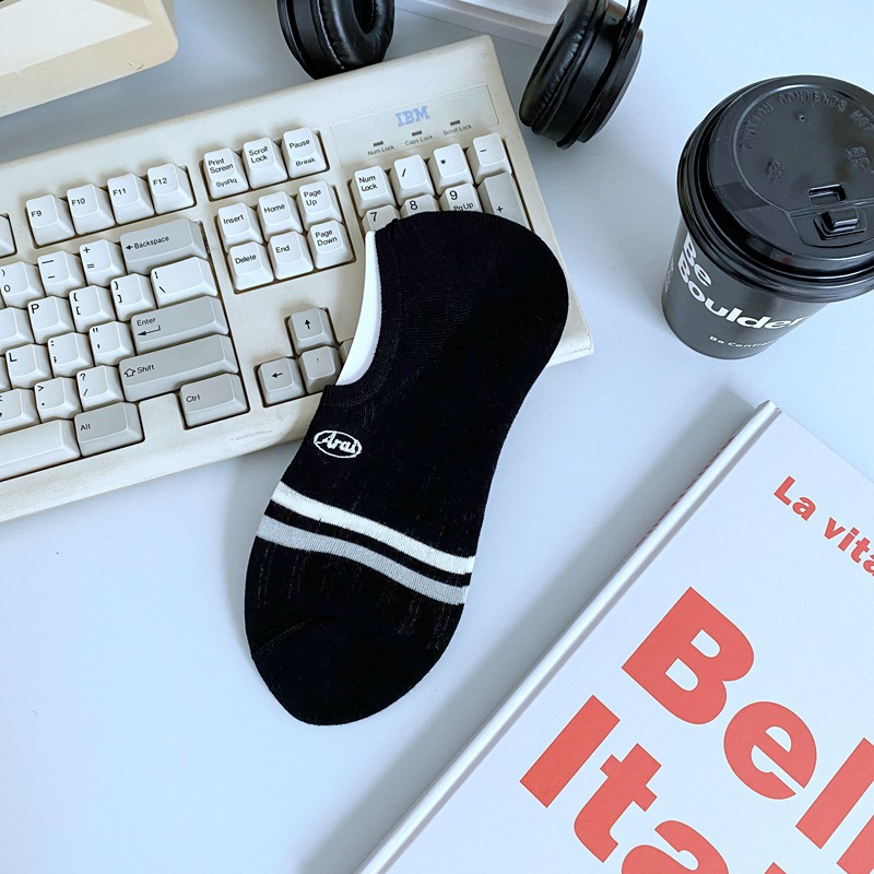 2023 봄과 여름 2 바 자수 캐주얼 트렌드 실리콘 미끄럼 방지 보이지 않는 양말 양말 도매 남성용 얕은 양말