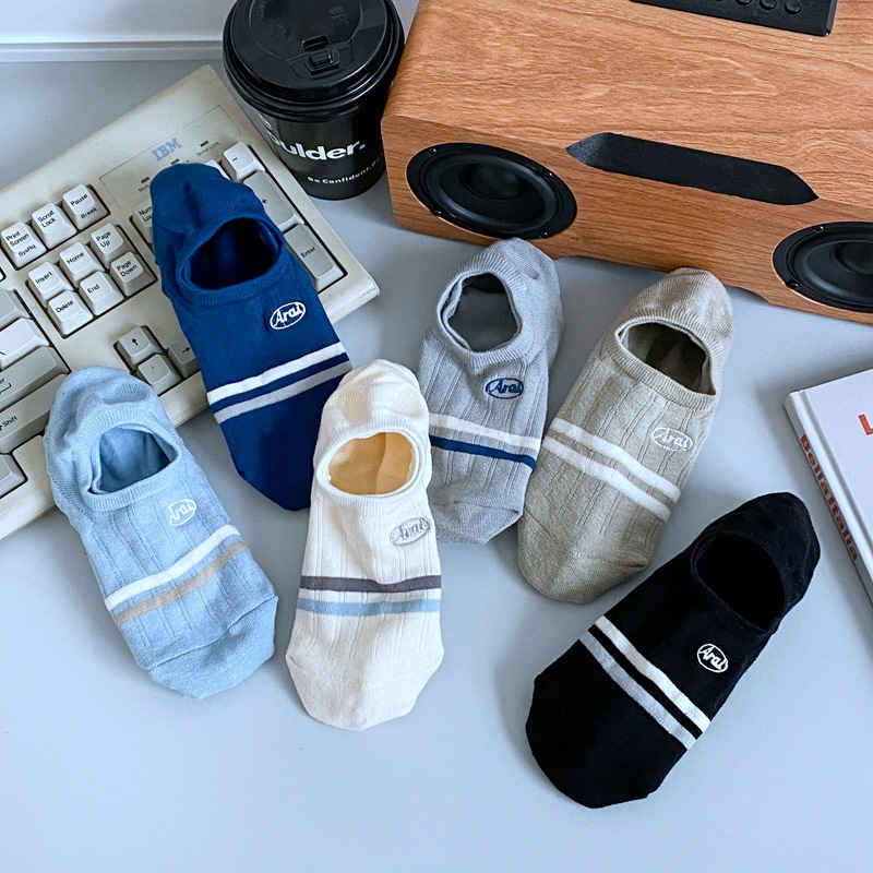 2023 봄과 여름 2 바 자수 캐주얼 트렌드 실리콘 미끄럼 방지 보이지 않는 양말 양말 도매 남성용 얕은 양말스토어 가기
