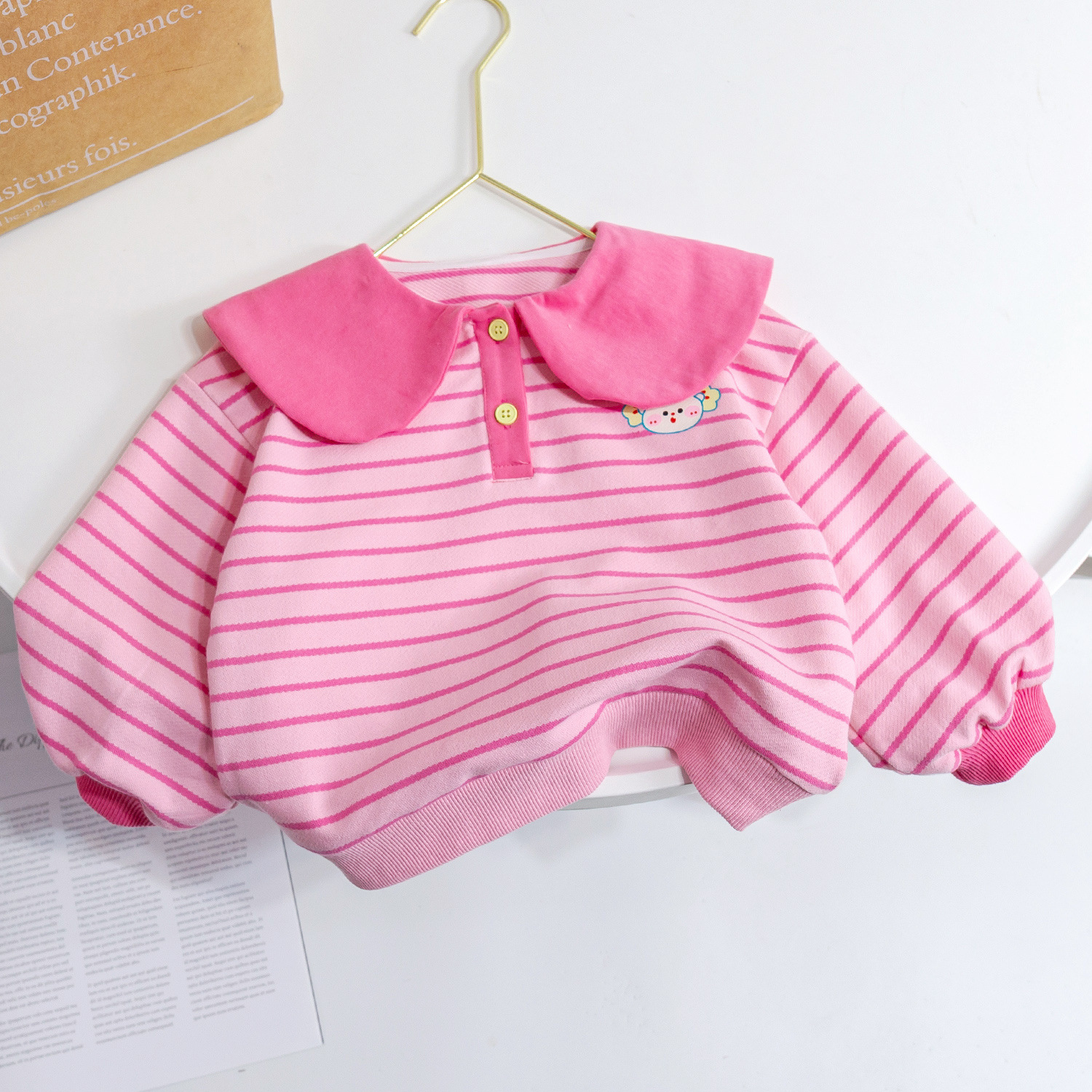 여아 운동복 봄 2023 새로운 서양 스타일 봄과 가을 아기 인터넷 연예인 만화 스트라이프 코트 어린이 탑스토어 가기