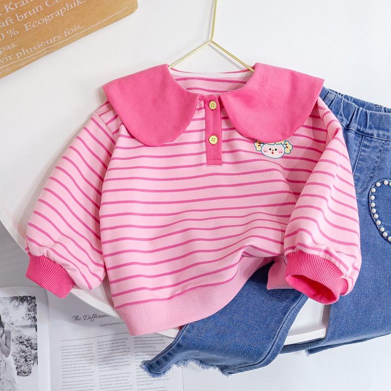 여아 운동복 봄 2023 새로운 서양 스타일 봄과 가을 아기 인터넷 연예인 만화 스트라이프 코트 어린이 탑