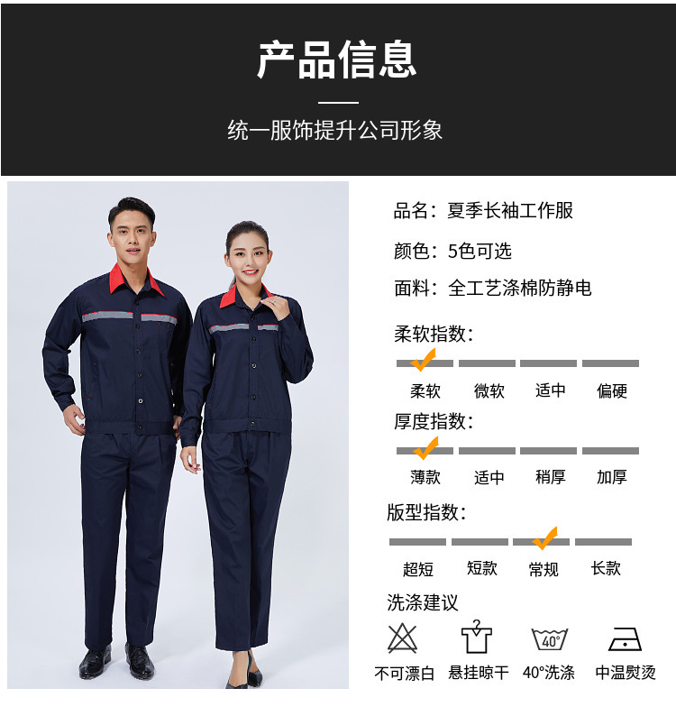 여름 긴 소매 정전기 방지 반사 가스 스테이션 세트 가스 매체 석유 화학 작업 보호 의류 전기 인쇄스토어 가기