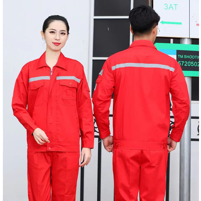 도매 여름용 긴팔 정전기 방지 작업복 세트 반사성 주유소 가스 중국석유 전기 인쇄 자수