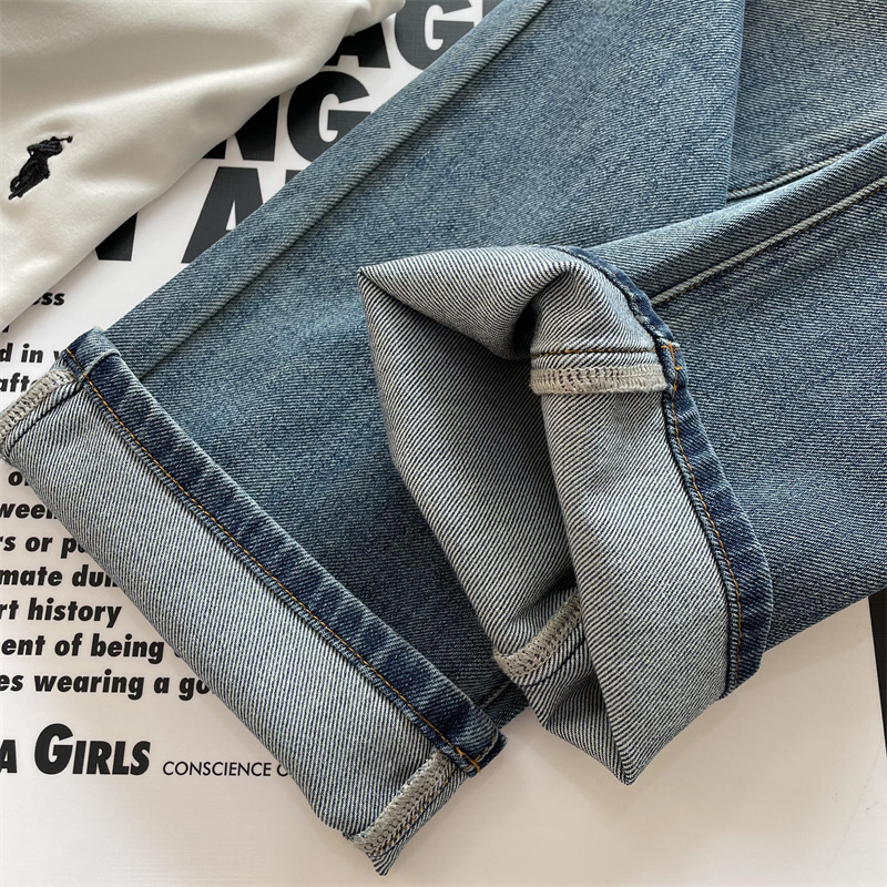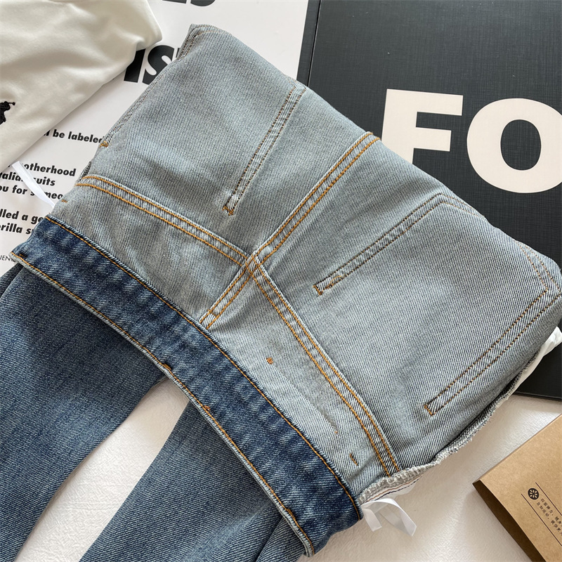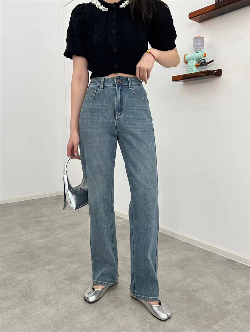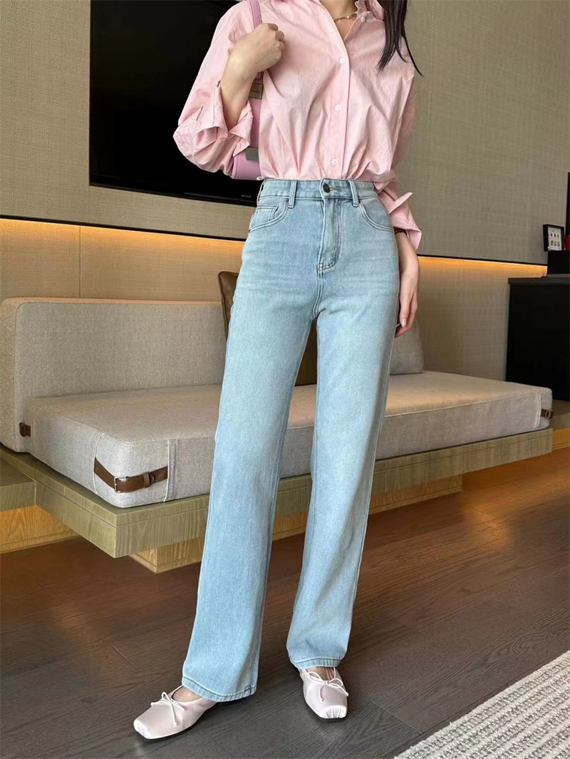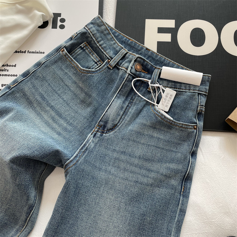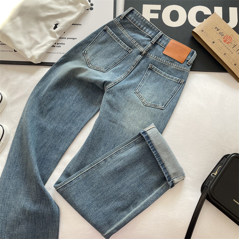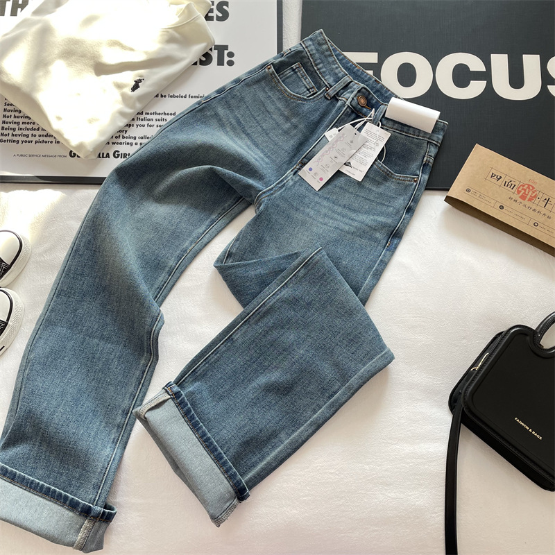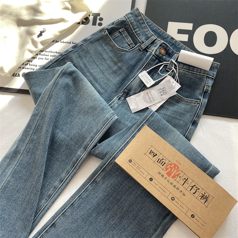 4 면 스트레치 좁은 슈퍼 소프트 원사 스트레이트 바지 높은 허리 슬리밍 다목적 향수 블루 스트레치 청바지 봄과 가을 새로운스토어 가기