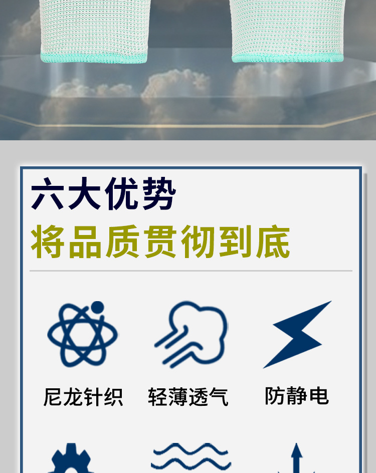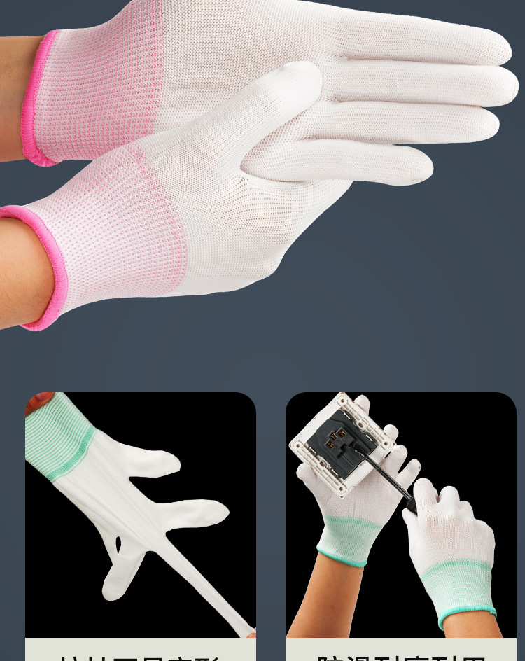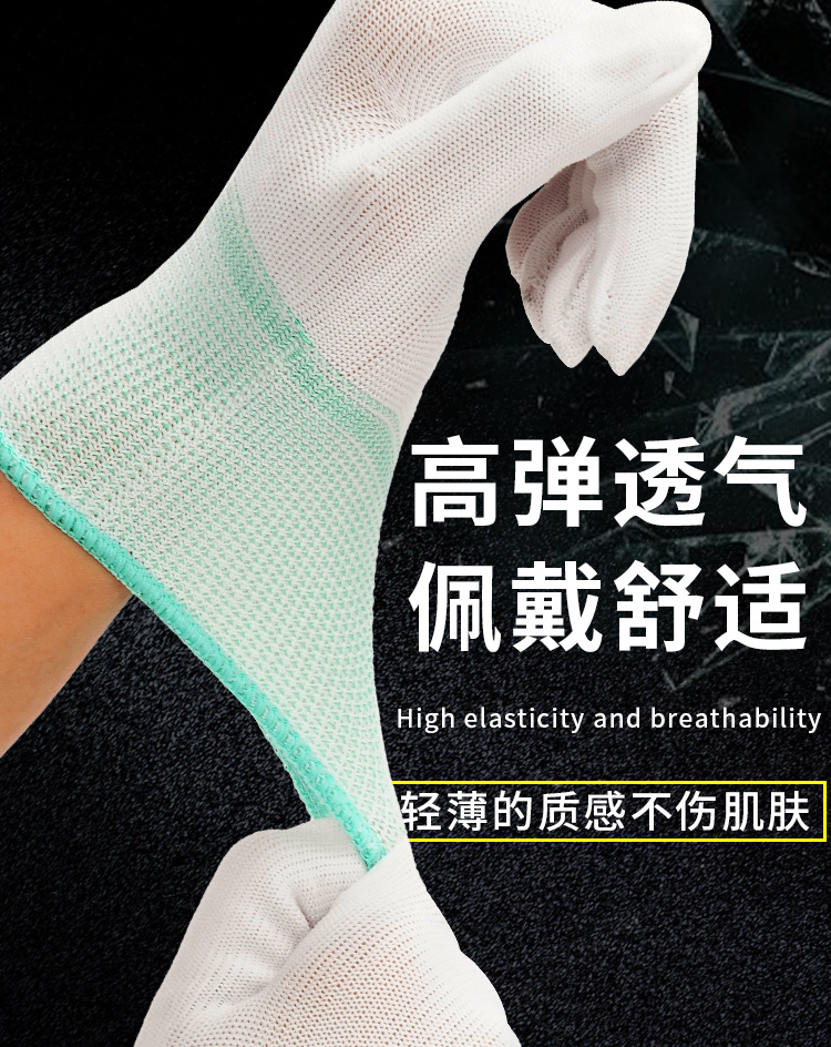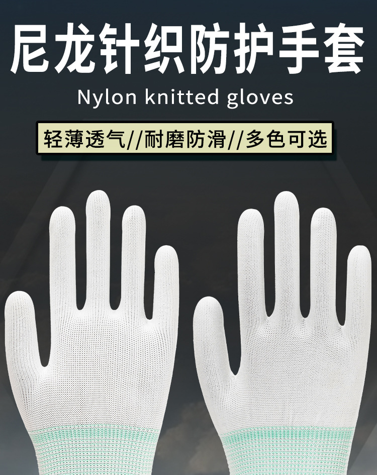 13 니트 나일론 작업 장갑 얇은 초경량 미끄럼 방지 초박형 정전기 방지 전자 공장 통기성 작업 보호