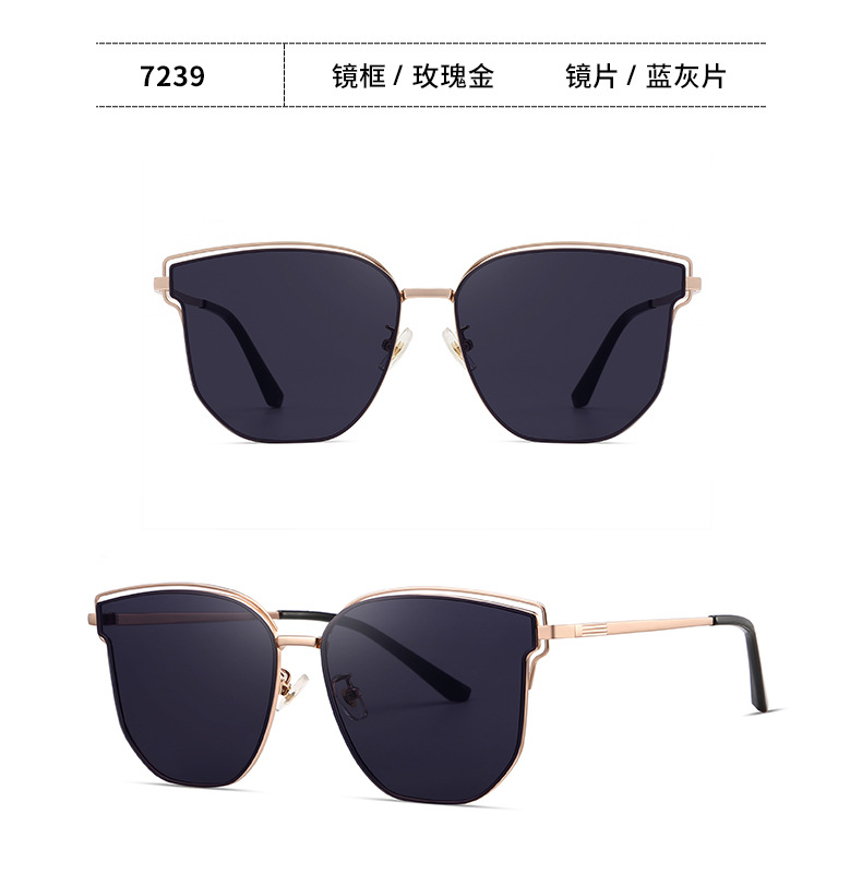 패셔너블한 고화질 나일론 선글라스, 다각형, 고급스러운 느낌, 여성용 자외선 차단, 여름 트렌드, 메탈 선글라스 7239