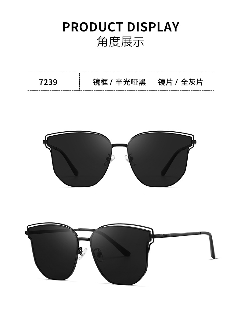패셔너블한 고화질 나일론 선글라스, 다각형, 고급스러운 느낌, 여성용 자외선 차단, 여름 트렌드, 메탈 선글라스 7239스토어 가기