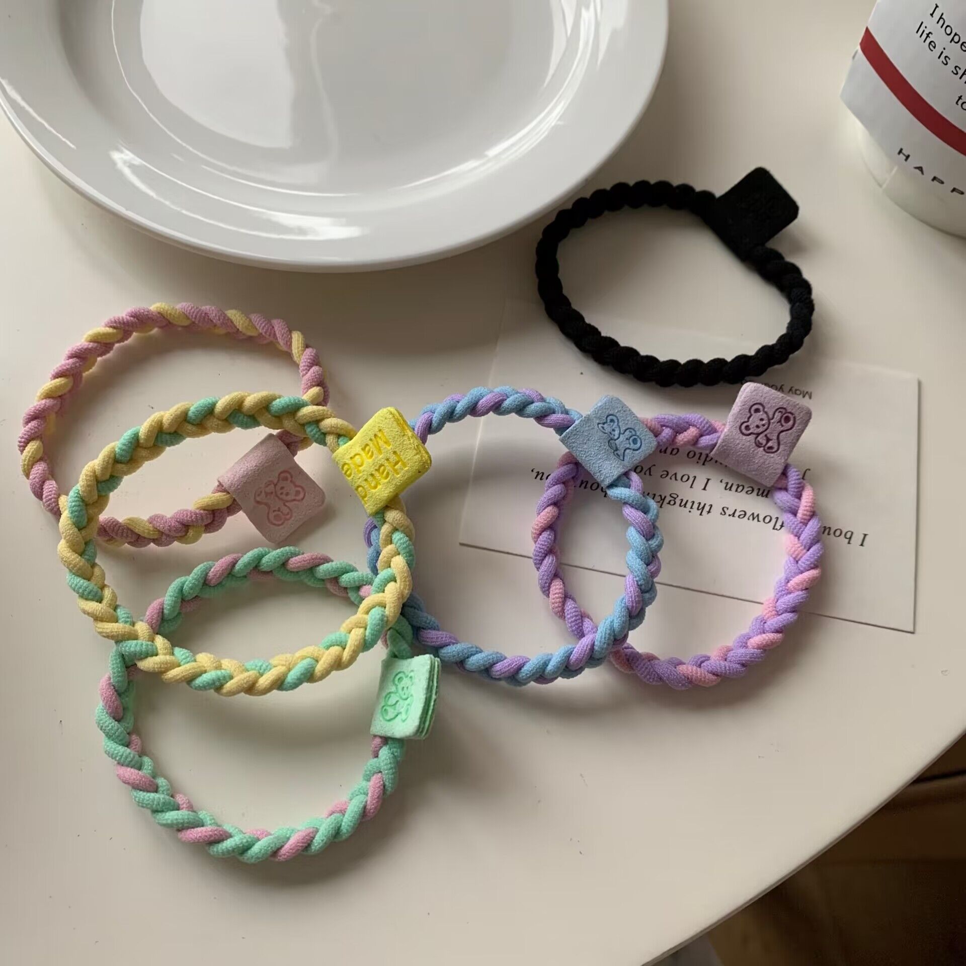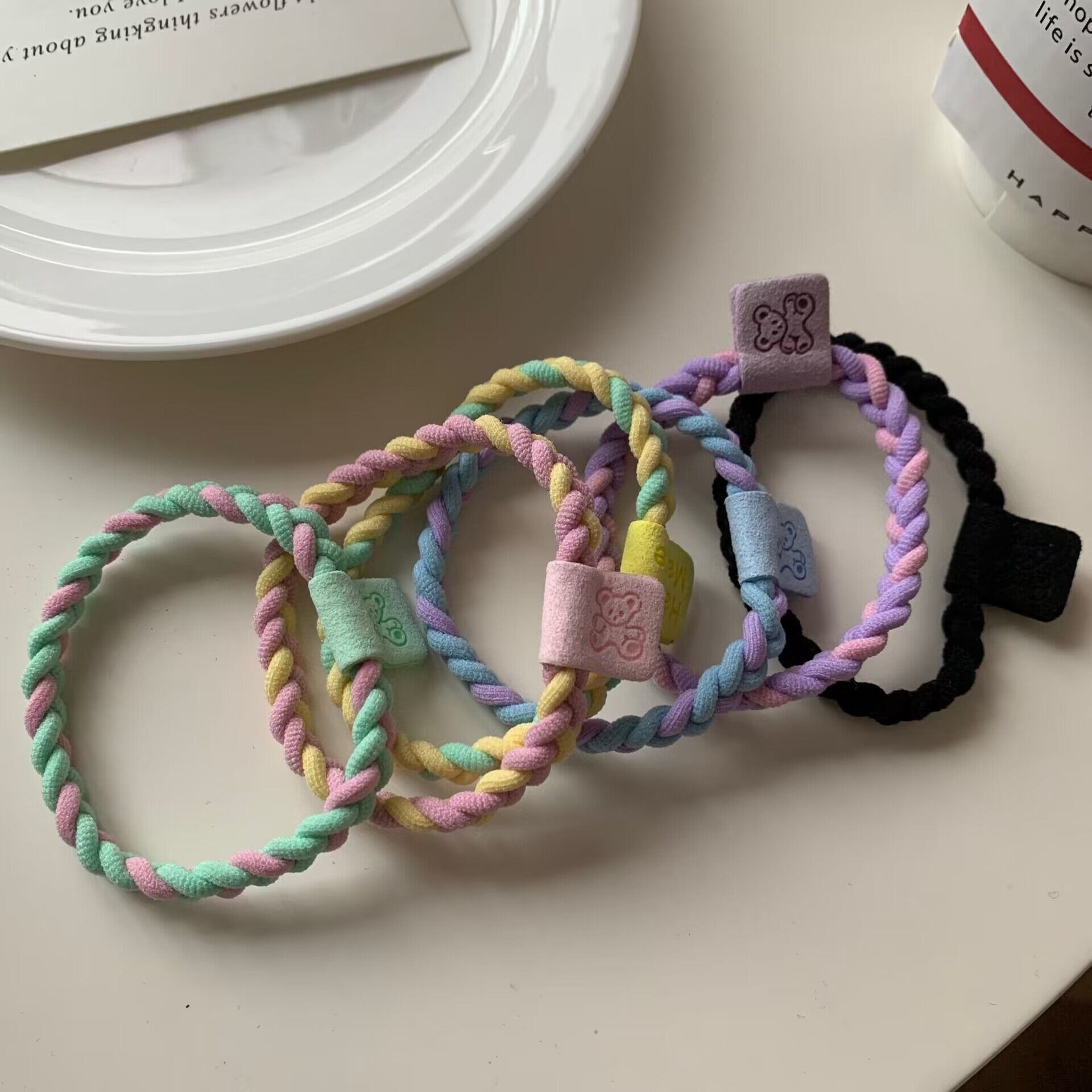 귀여운 캔디 컬러 트위스트 곰 헤어 링 고탄성베이스 헤드 라인 높은 말꼬리 고무 힘줄 기본 가죽 커버