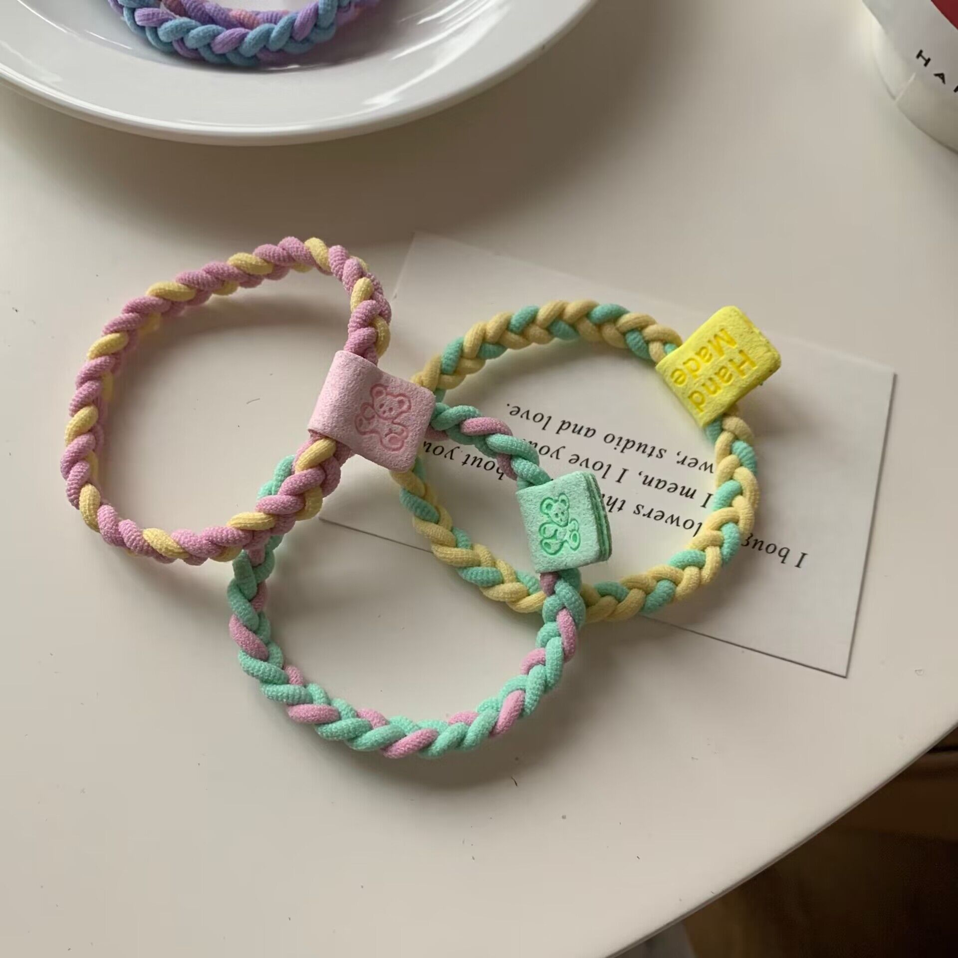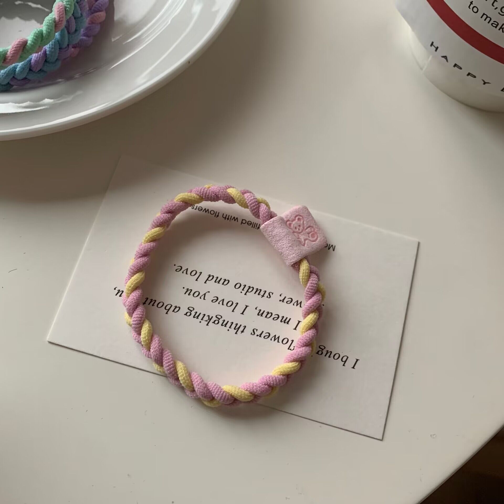 귀여운 캔디 컬러 트위스트 곰 헤어 링 고탄성베이스 헤드 라인 높은 말꼬리 고무 힘줄 기본 가죽 커버스토어 가기