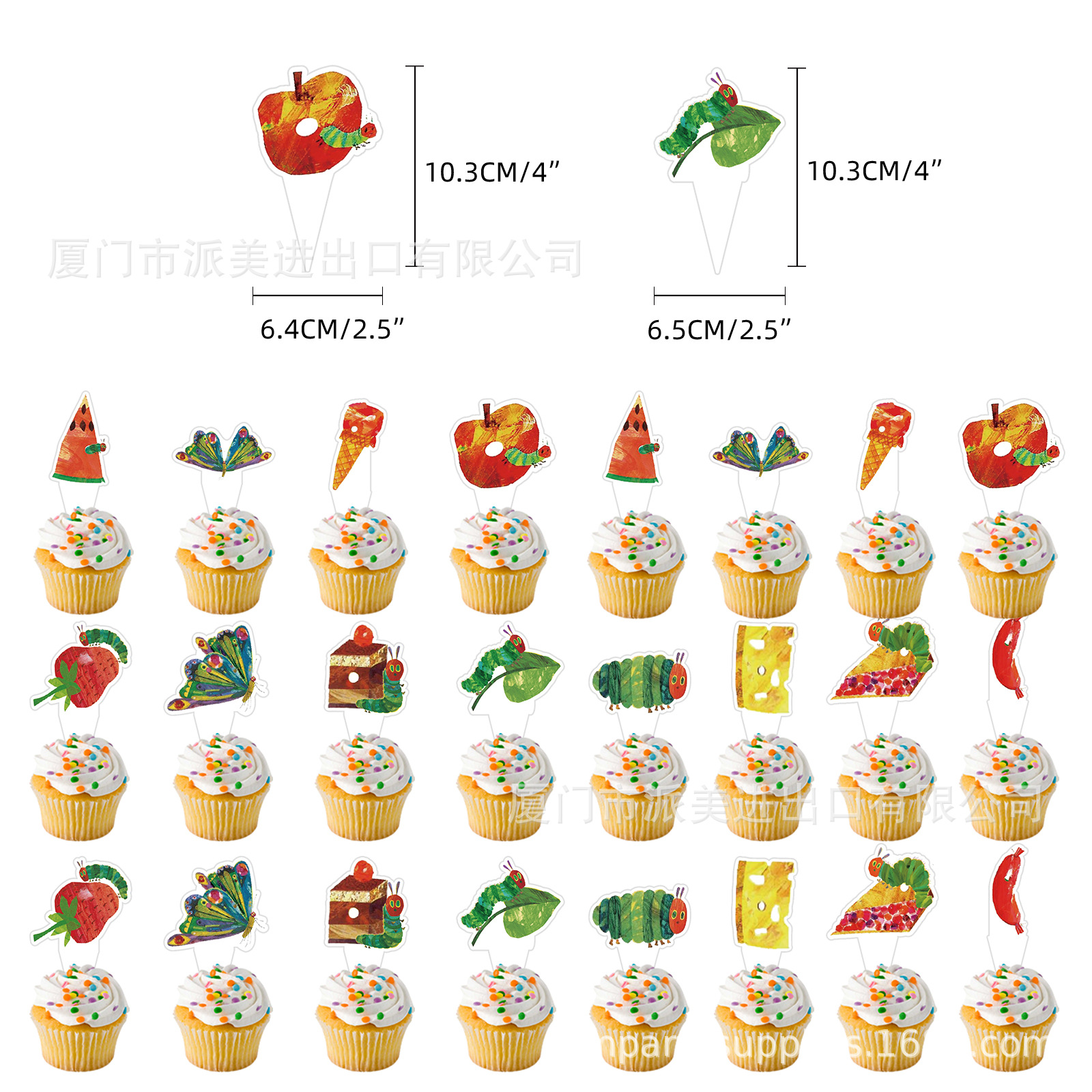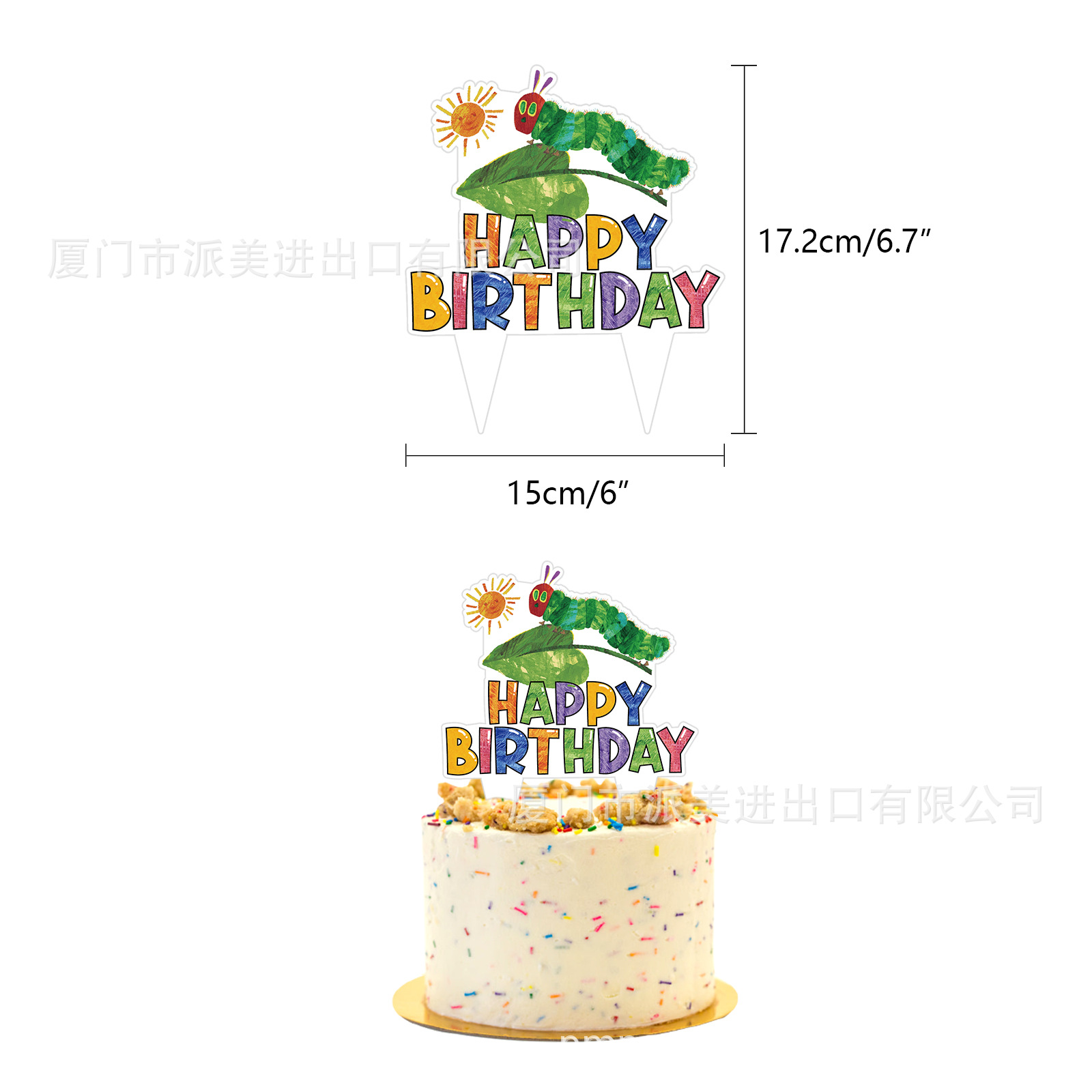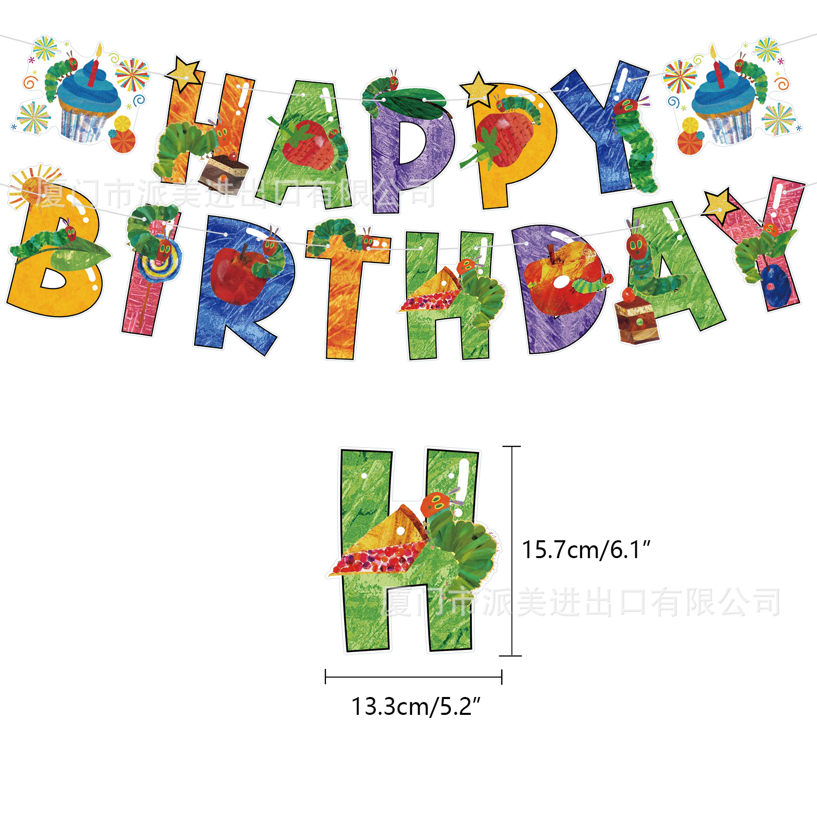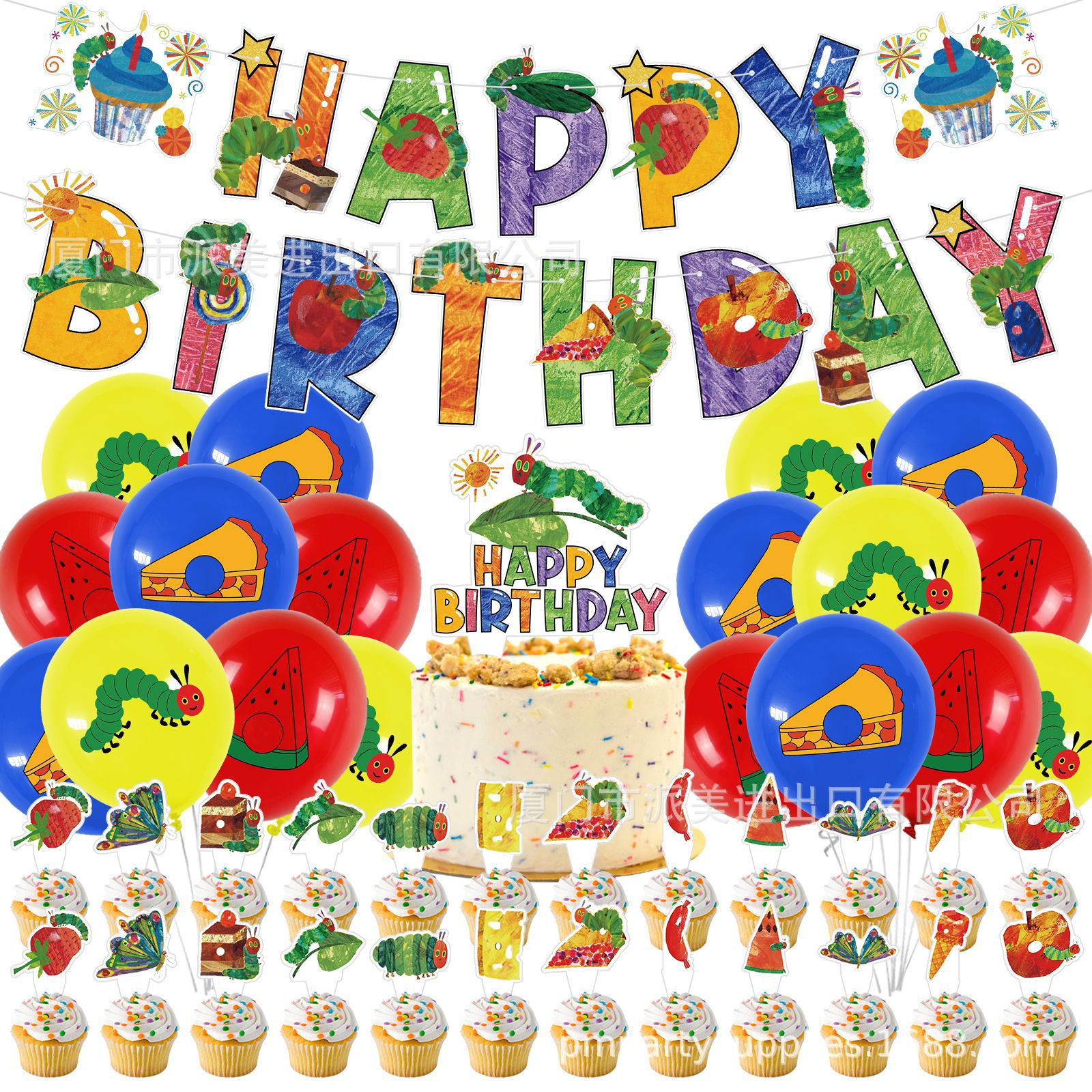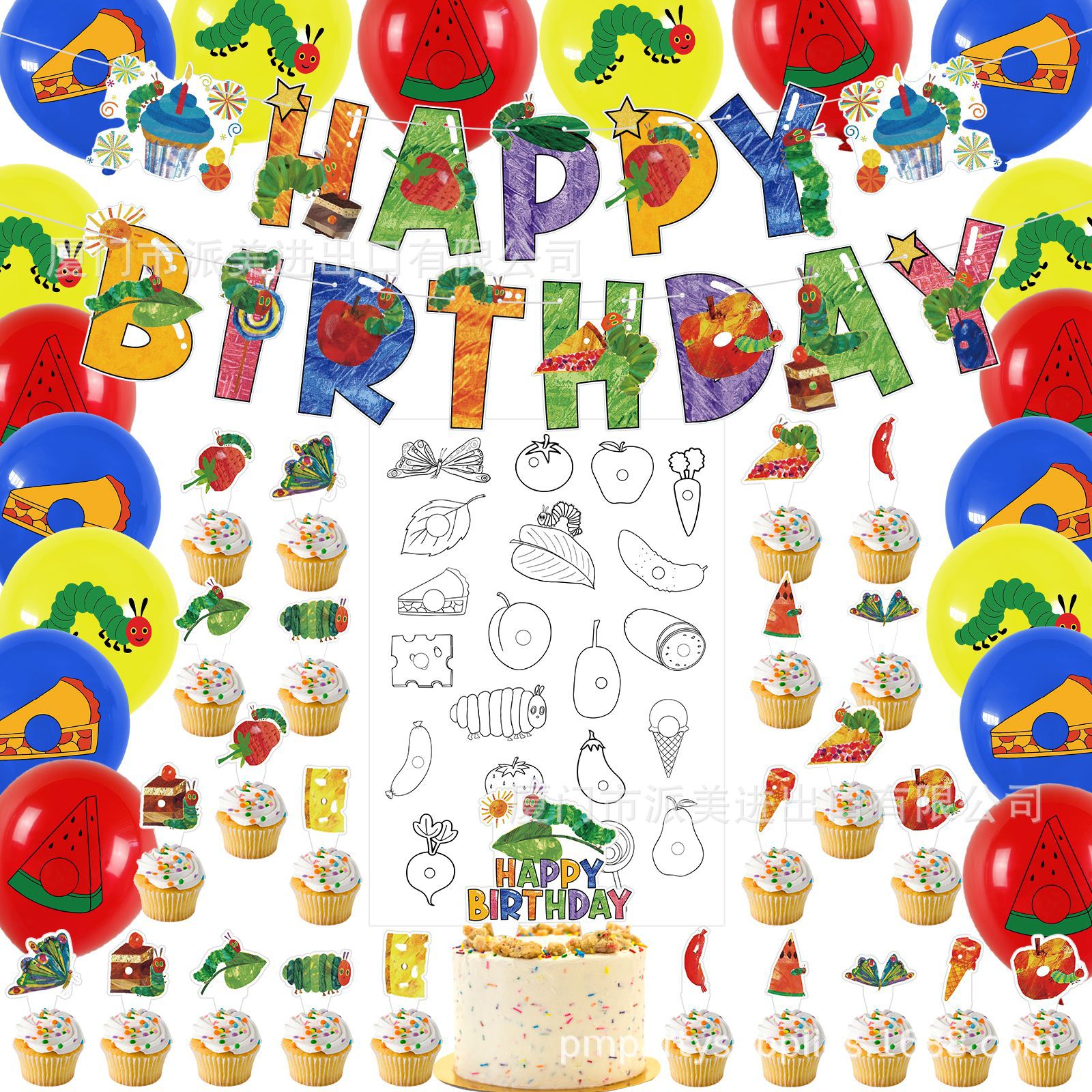 产品信息:小马丁绘本好饿的毛毛虫主题生日派对横幅插旗插排气球装饰套装