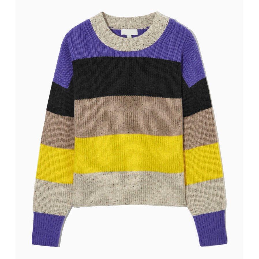 재고 있음 CS 여성복 표준 핏 골지 패턴 배색 울 스웨터 겨울 1154431001