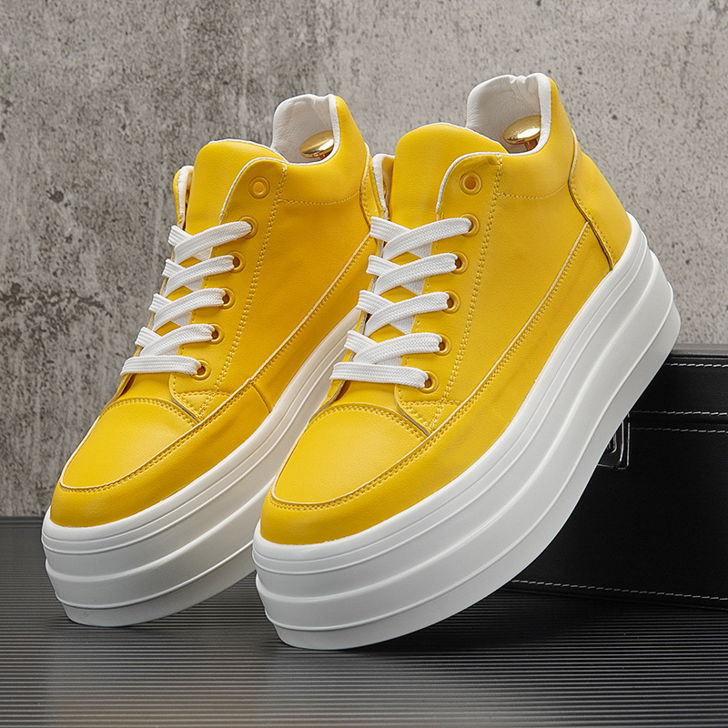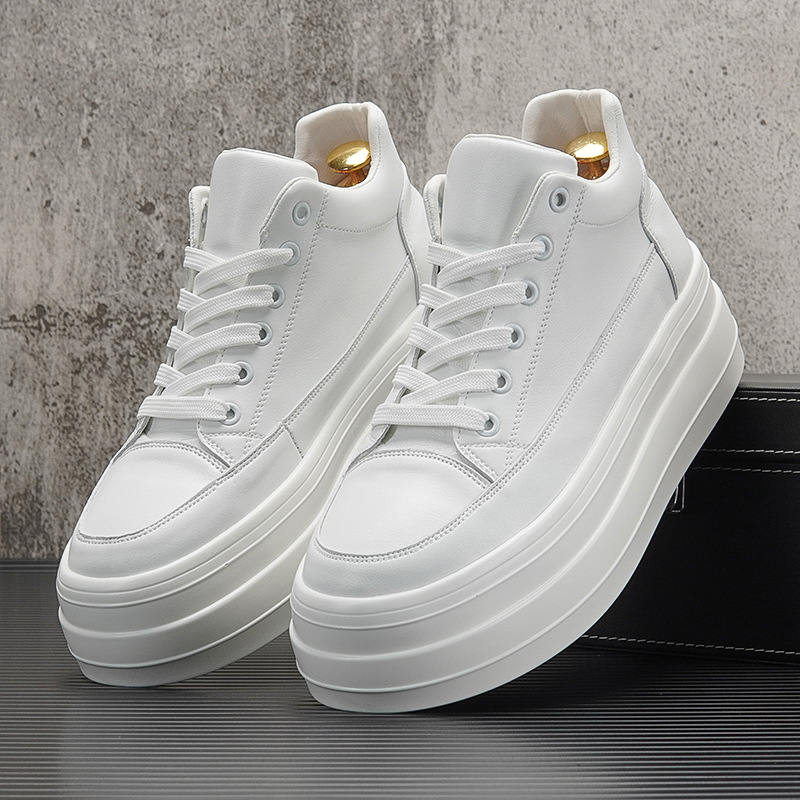하이탑 화이트 슈즈 남성용 2023 새로운 봄 유행 캐주얼 내부 높이 증가 플랫폼 신발 남성용 미드 탑 두꺼운 슬래브 신발스토어 가기