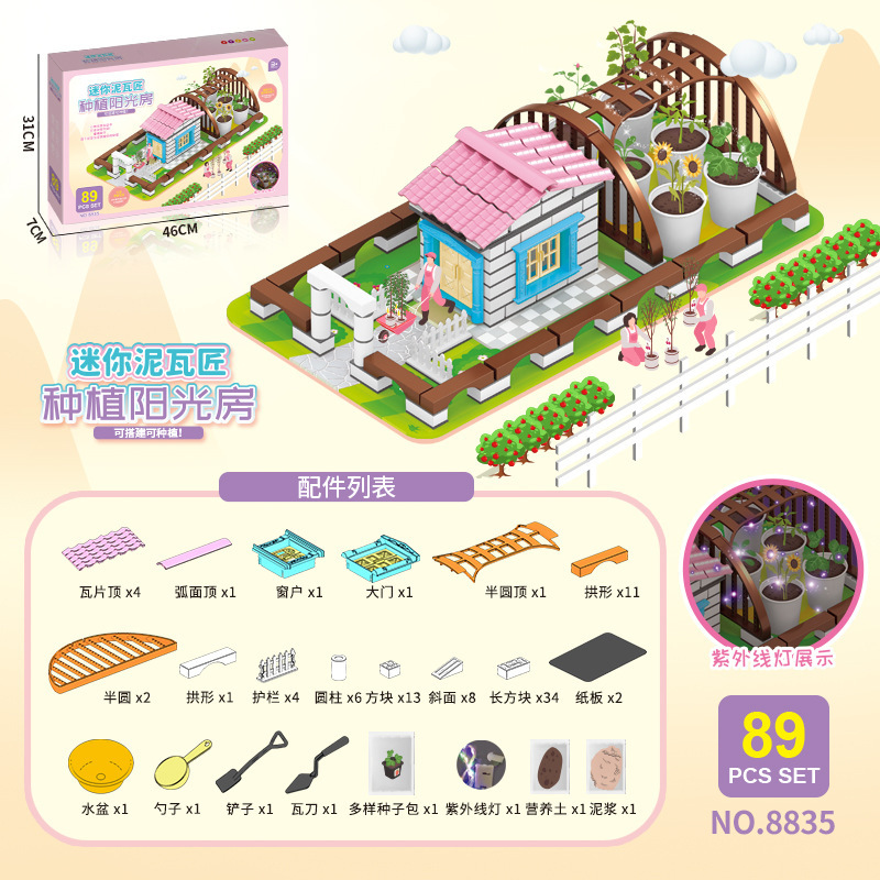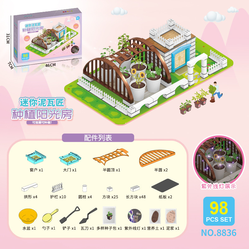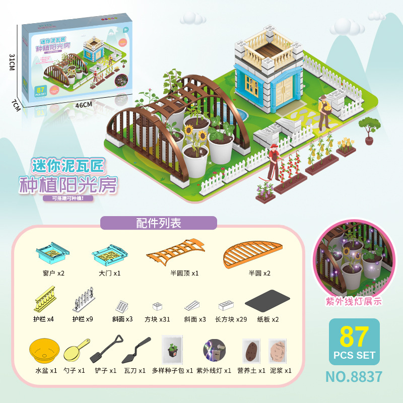어린이 미니 메이슨 DIY 수제 코티지 농장 선 룸 초등학교 학생 과학 실험 심기 장난감스토어 가기