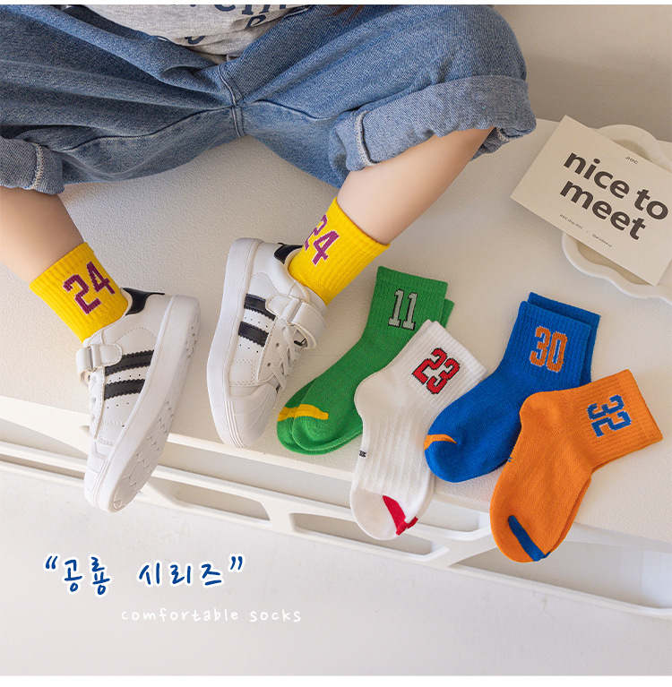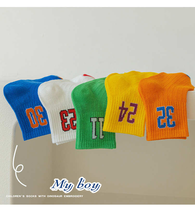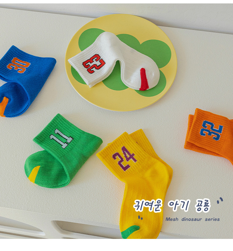 2023 봄과 여름 어린이 양말 도매 편지 밝은 색 스포츠 트렌드 얇은 메쉬 양말 만화 통기성 소년 양말스토어 가기