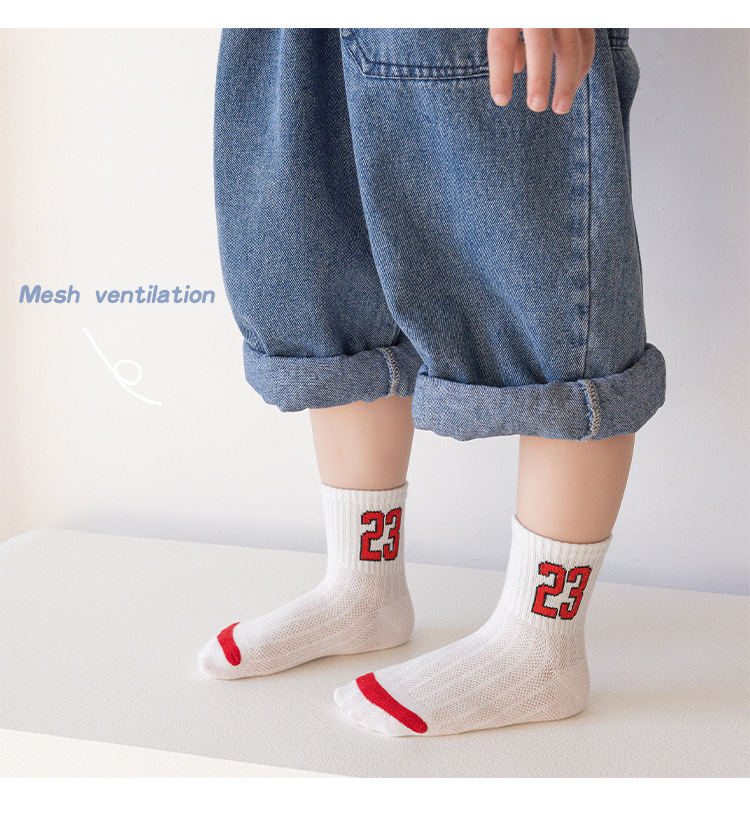 2023 봄과 여름 어린이 양말 도매 편지 밝은 색 스포츠 트렌드 얇은 메쉬 양말 만화 통기성 소년 양말