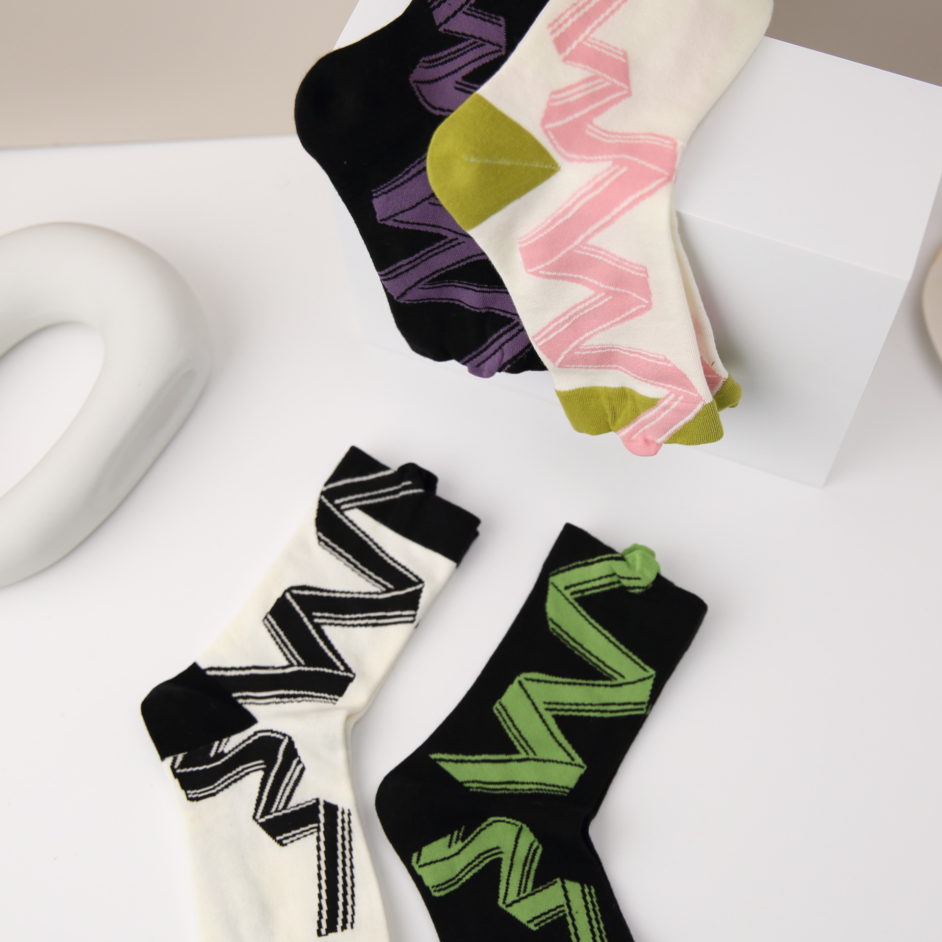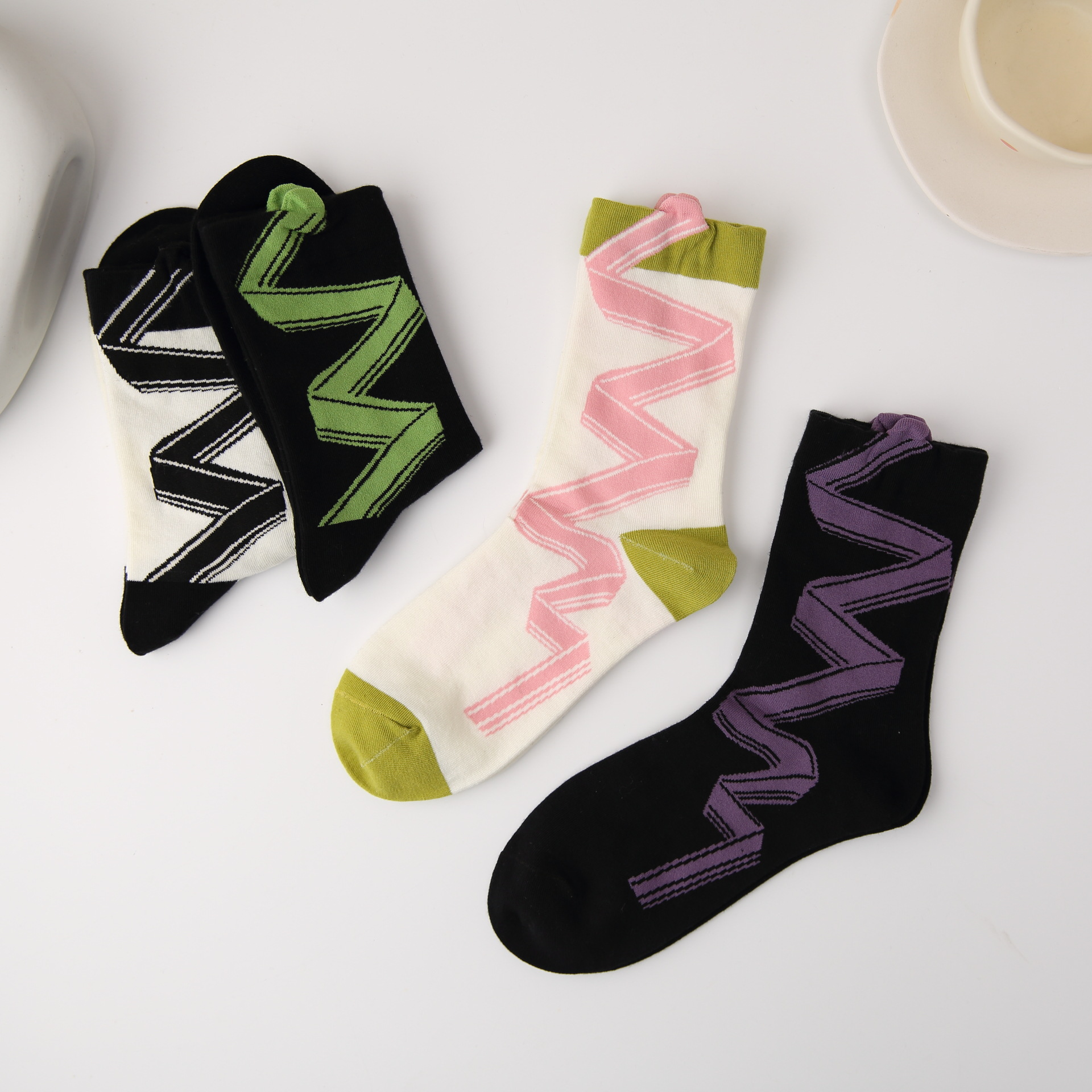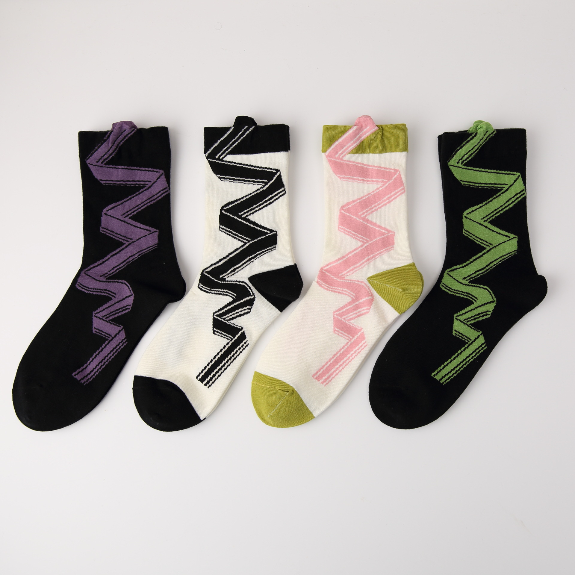 오리지널 3 차원 스트라이프 양말 여성용 양말 추상 곡선 스트립 프랑스 스타일 유행 중차원 양말 스트리머스토어 가기