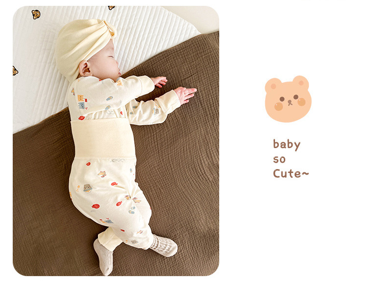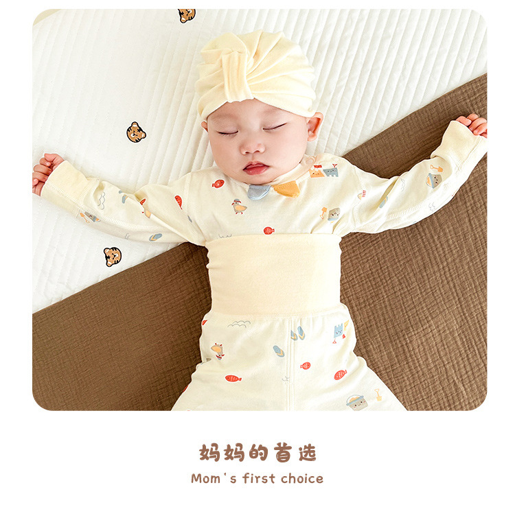 아기의 가을 옷과 바지 세트 분할 순면 봄 하이 웨이스트 배 보호 속옷 봄과 가을 아기 따뜻한 잠자는 옷