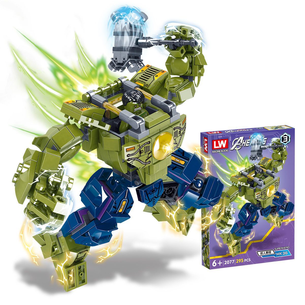 해피 플레이 2077 어벤져스 스틸 메카 그린 자이언트 미국 팀 타노스 퍼즐 조립 빌딩 블록 남자 소년 장난감 선물스토어 가기