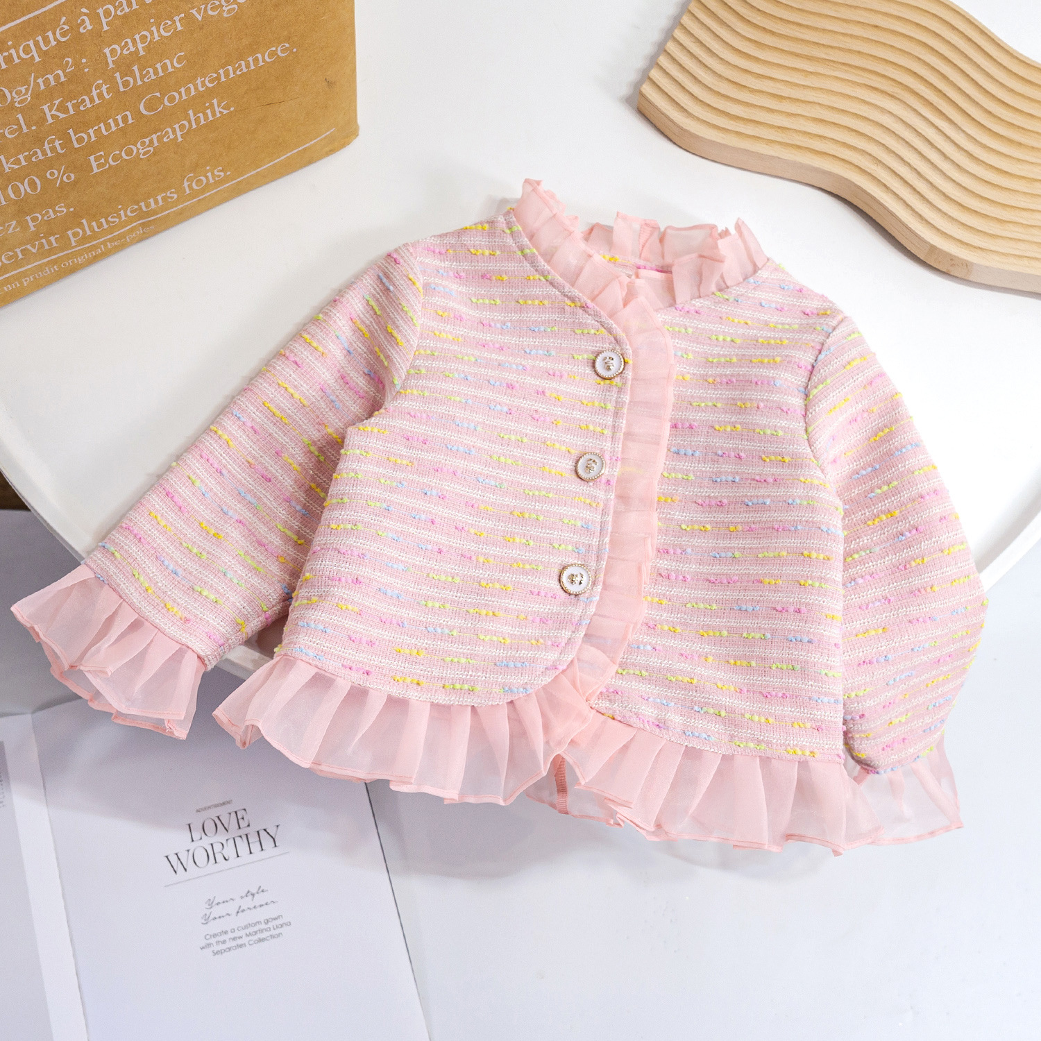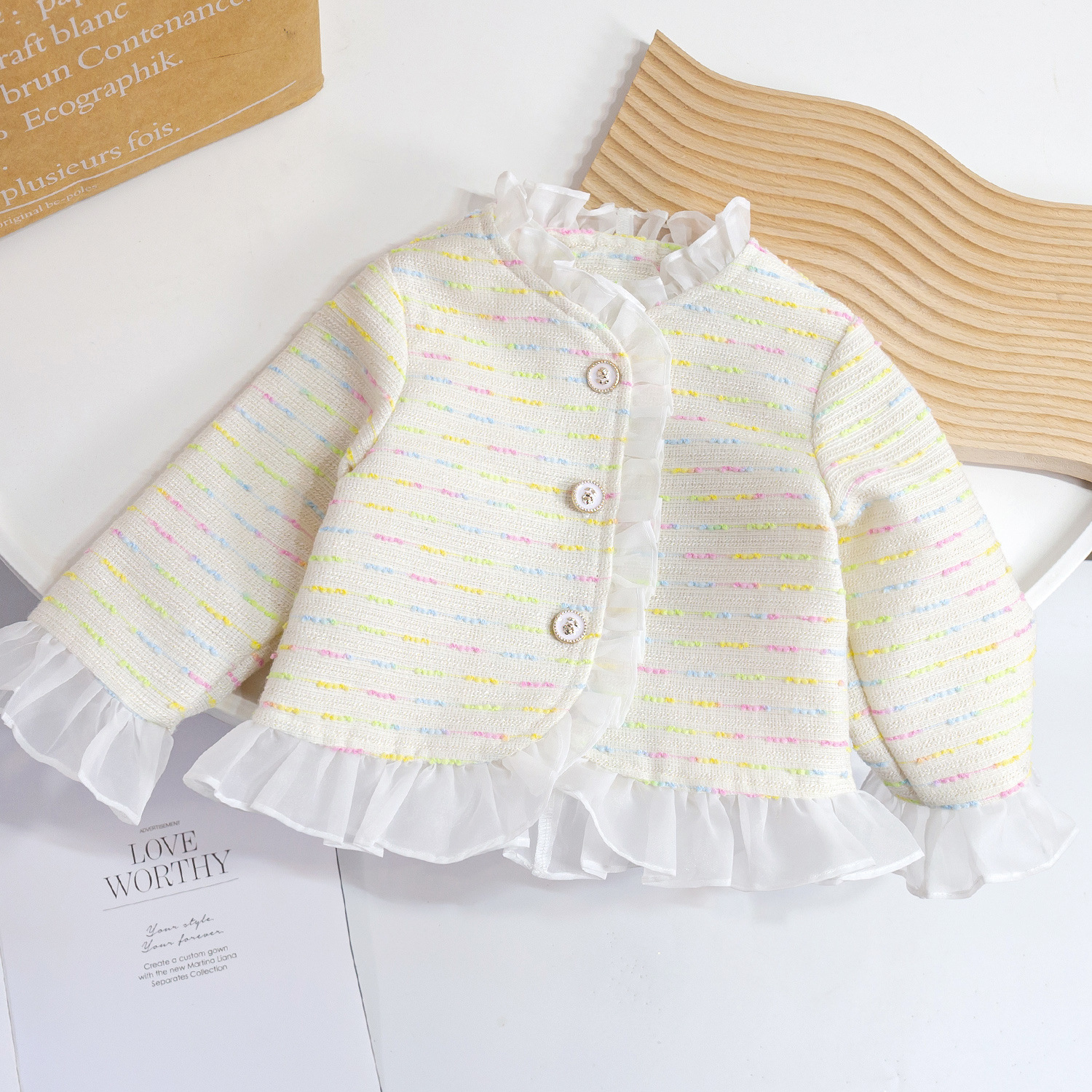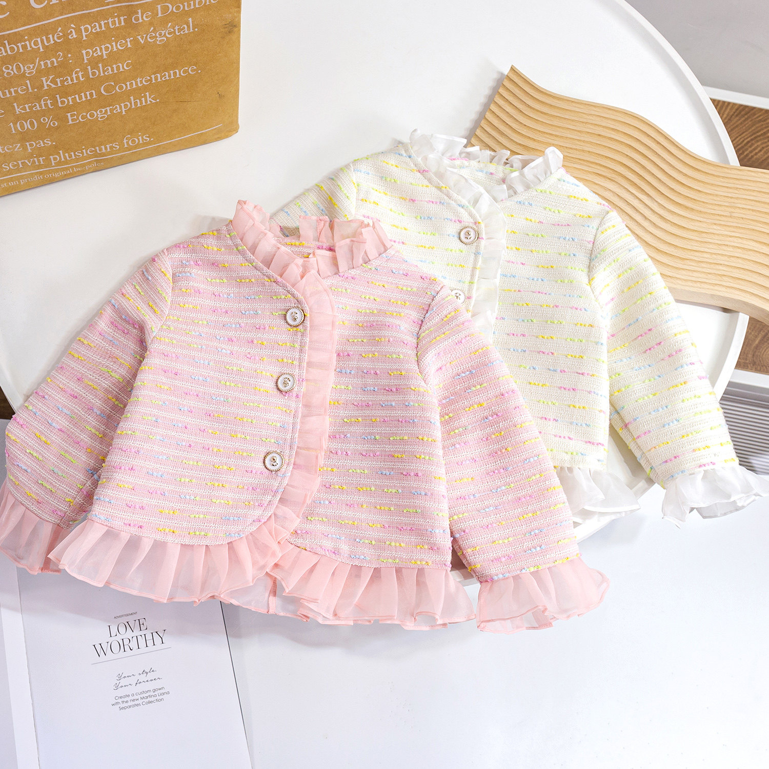 여아 코트 봄과 가을 2023 새로운 아동복 아동 서양식 짧은 아동 봄 의류 샤넬 스타일 가디건 탑