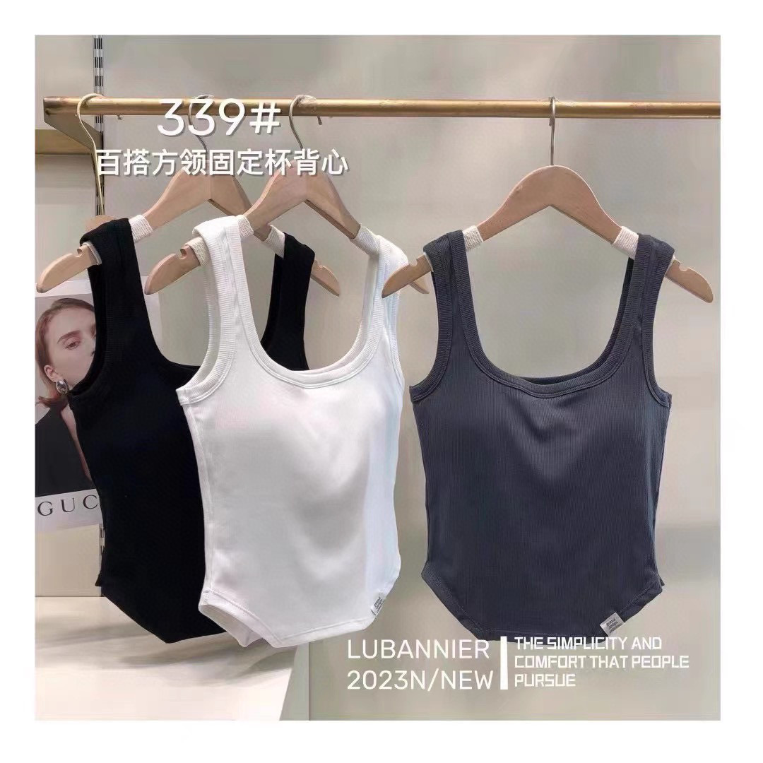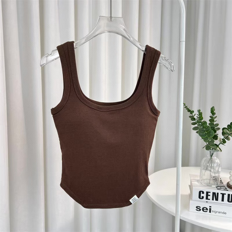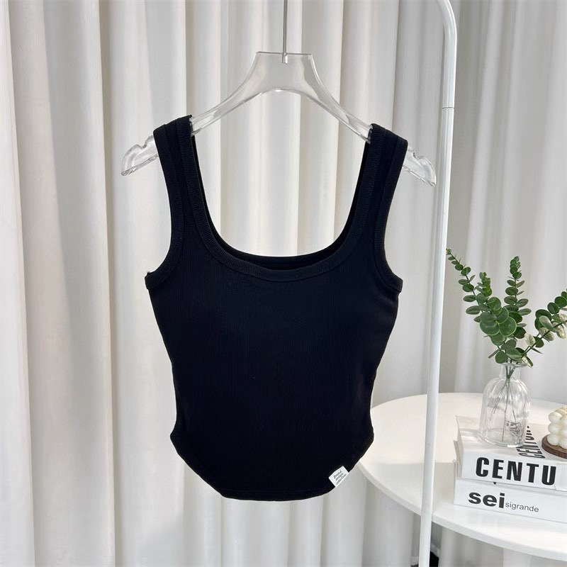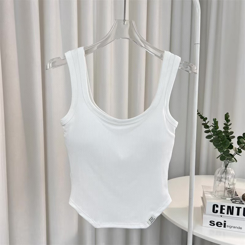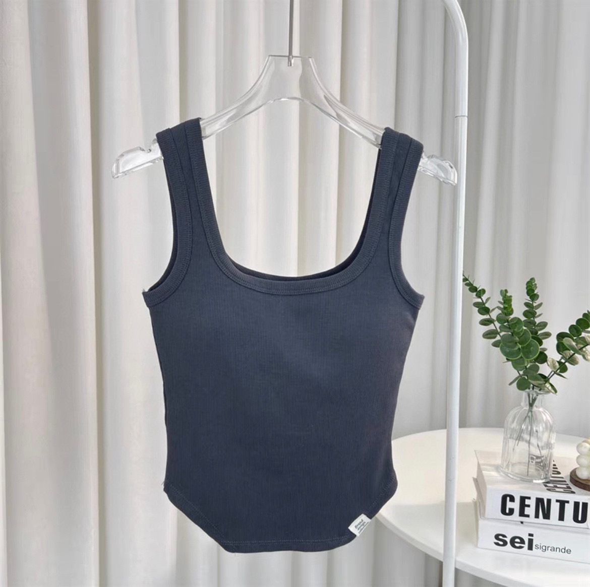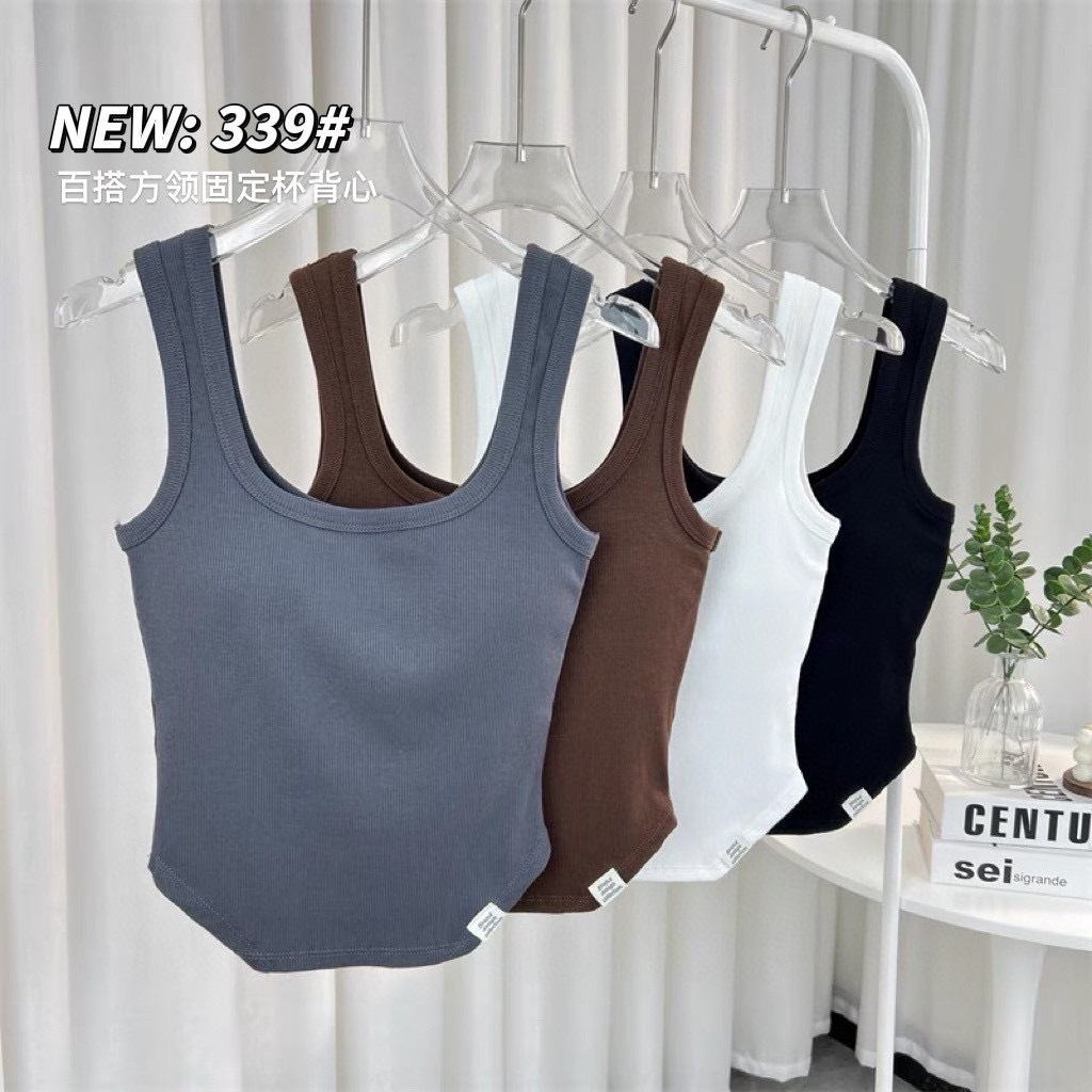 새로운 모든 매치 스퀘어 칼라 고정 컵 나사산 코튼 캐미솔 여성용 빈티지 슬림 핏 슬리밍 여성용 내부 마운트 아우터 탑