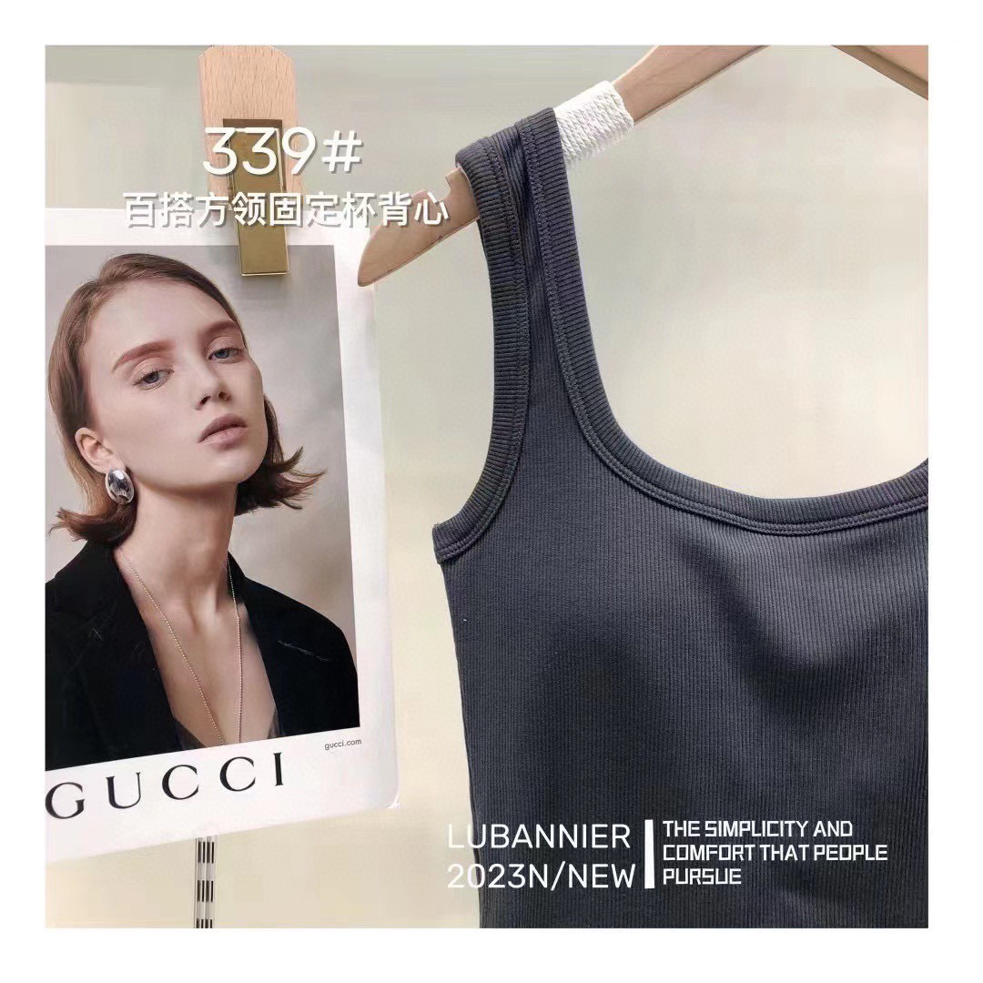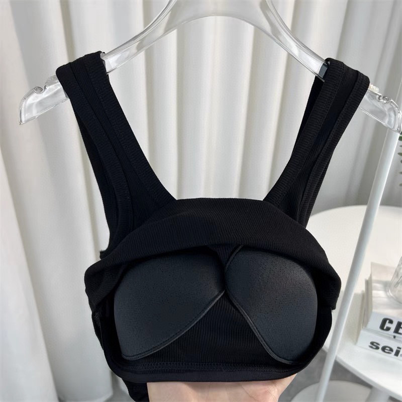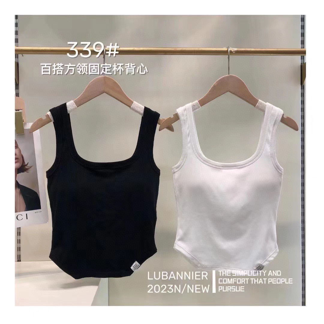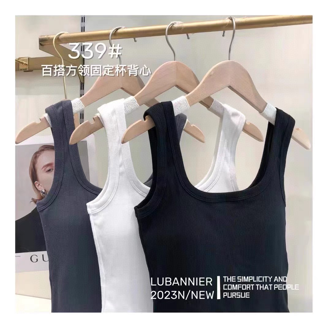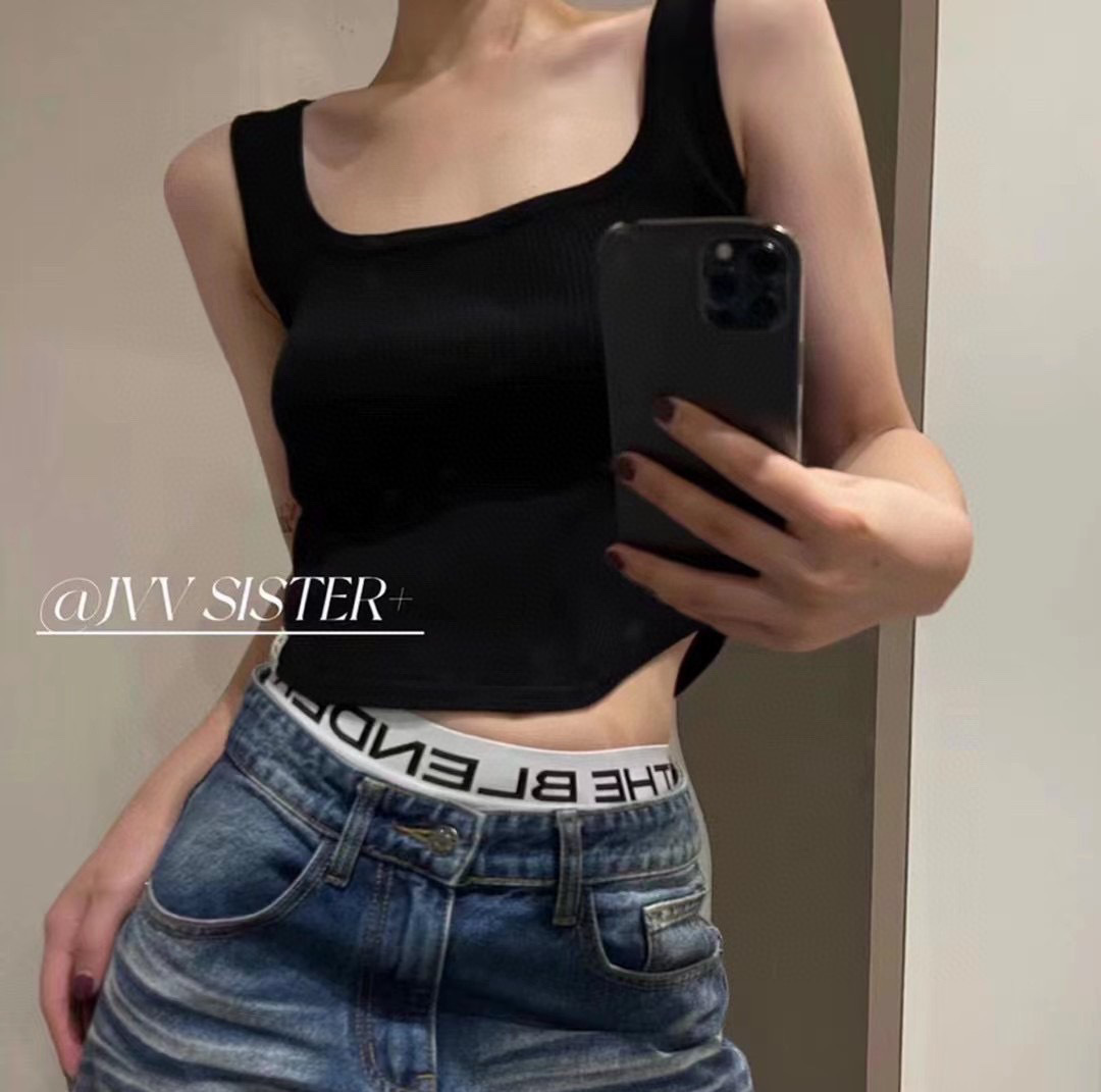새로운 모든 매치 스퀘어 칼라 고정 컵 나사산 코튼 캐미솔 여성용 빈티지 슬림 핏 슬리밍 여성용 내부 마운트 아우터 탑
