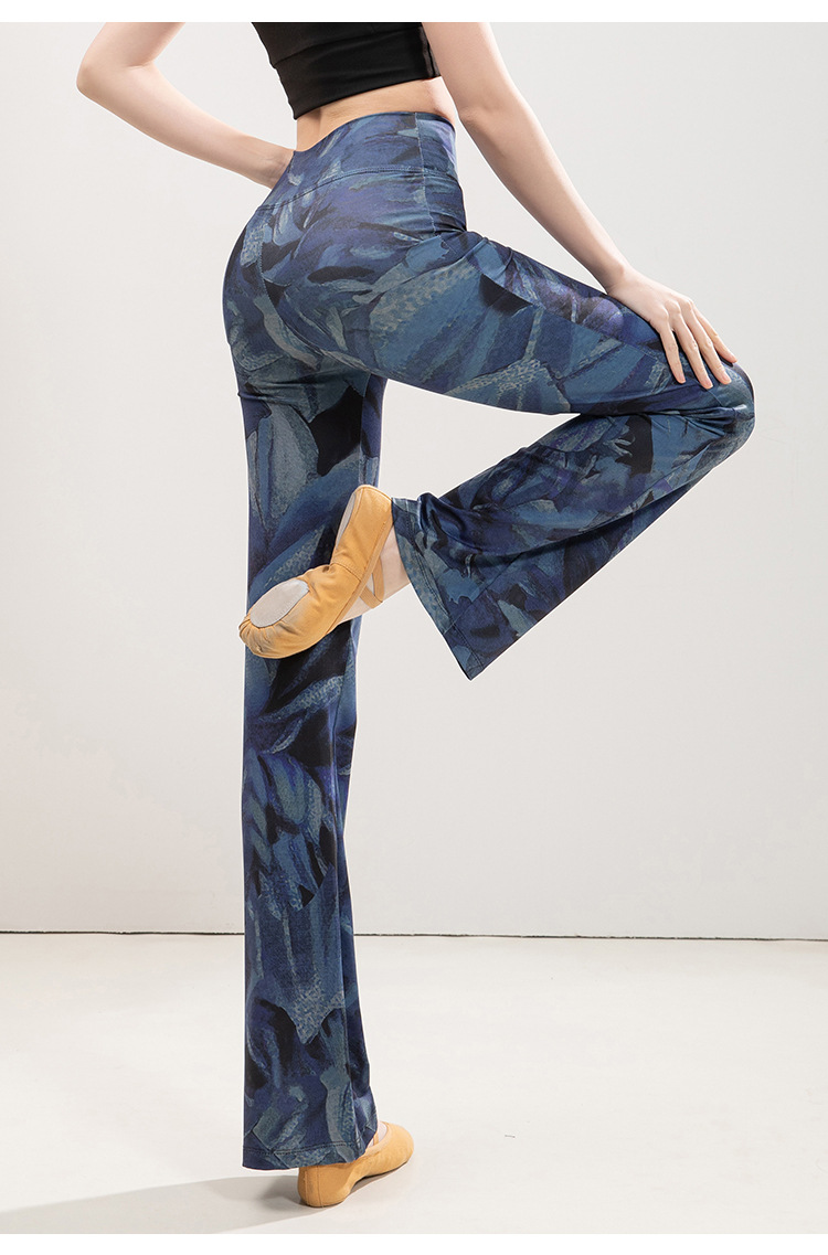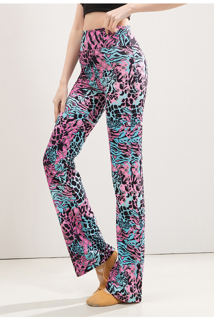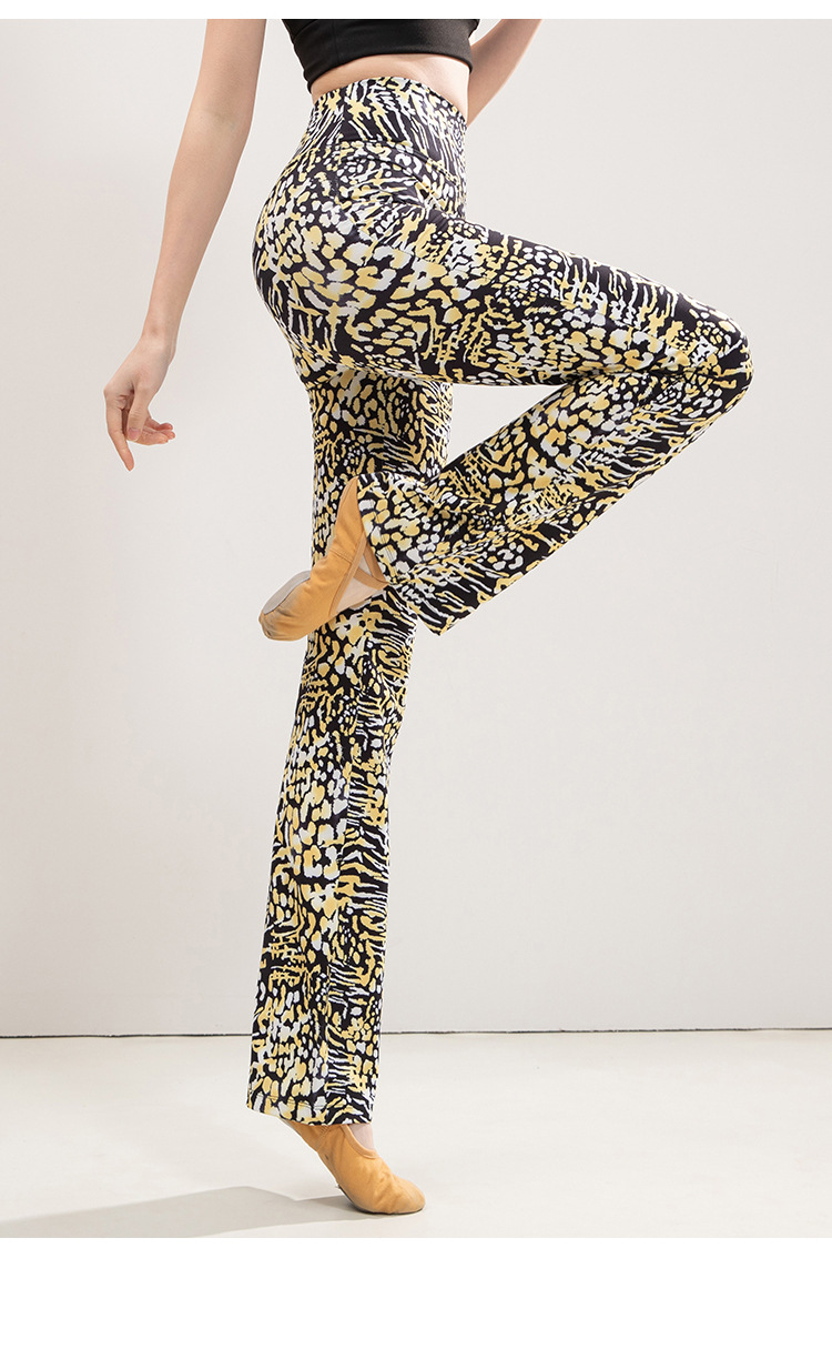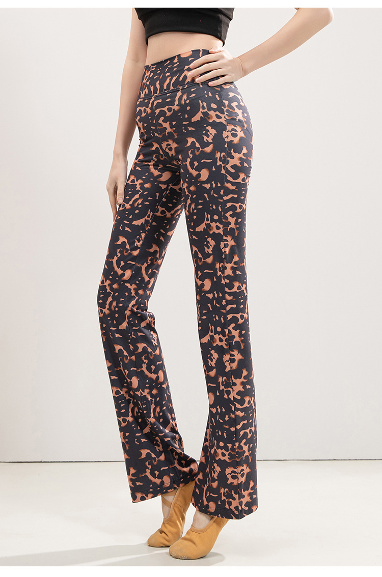 유럽과 미국의 표범 인쇄 요가 마이크로 플레어 바지 여성의 높은 허리 엉덩이 리프팅 슬리밍 스트레이트 중국 스타일 댄스 스포츠 피트니스 바지