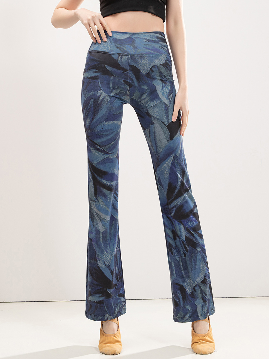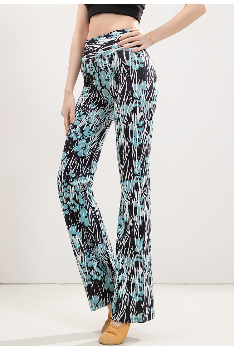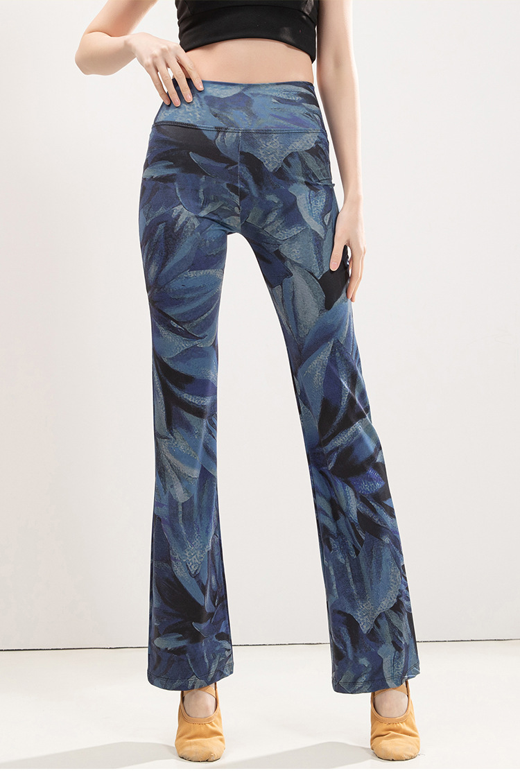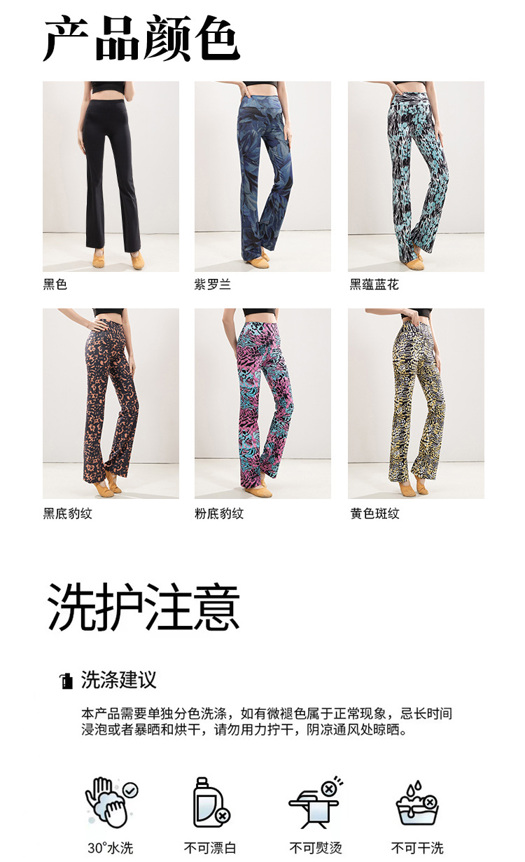 유럽과 미국의 표범 인쇄 요가 마이크로 플레어 바지 여성의 높은 허리 엉덩이 리프팅 슬리밍 스트레이트 중국 스타일 댄스 스포츠 피트니스 바지