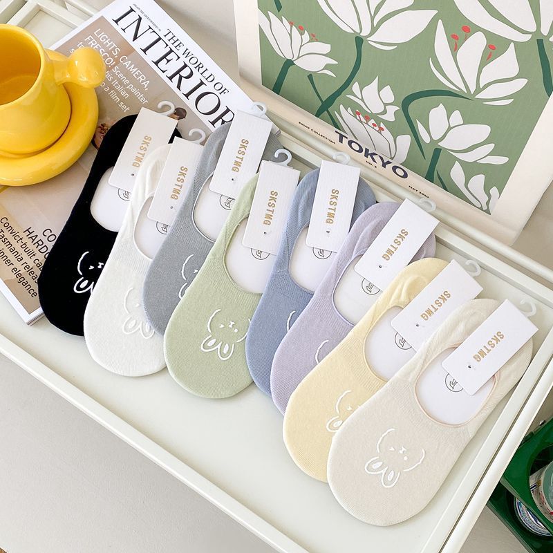 봄과 여름 일본 귀여운 토끼 핫 스탬핑 보이지 않는 양말 도매 얇은 얕은 입 보트 양말 여성 실리콘 미끄럼 방지 양말스토어 가기