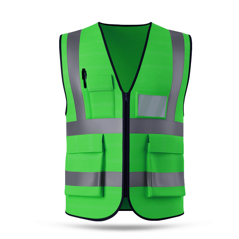 • 멀티 포켓 바늘 잔디 녹색 * 반사 스트립 * 반사 조끼 * 프리 사이즈
