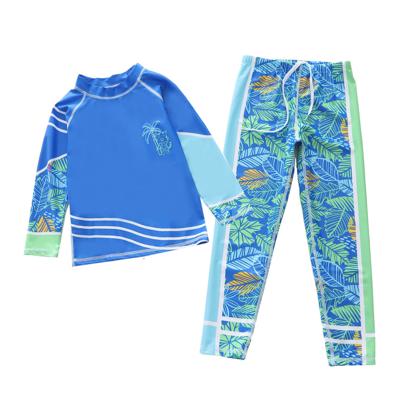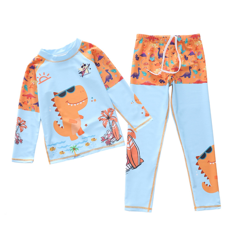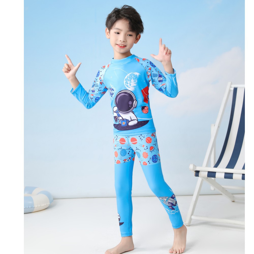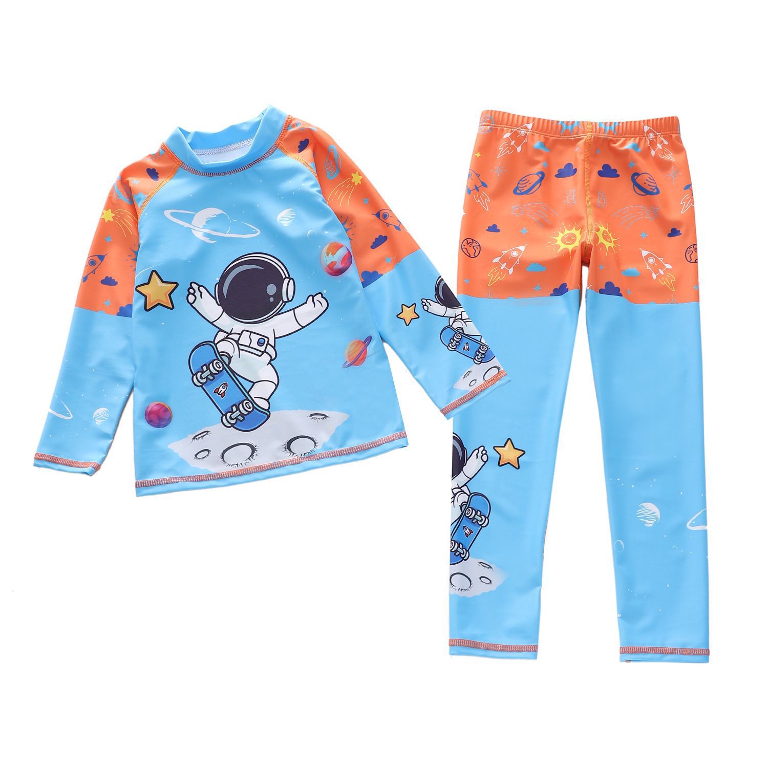 새로운 어린이 수영복 소년 원피스 긴팔 수영 모자 바지 2 서핑 수영복 소형, 중형 및 대형 어린이 수영복