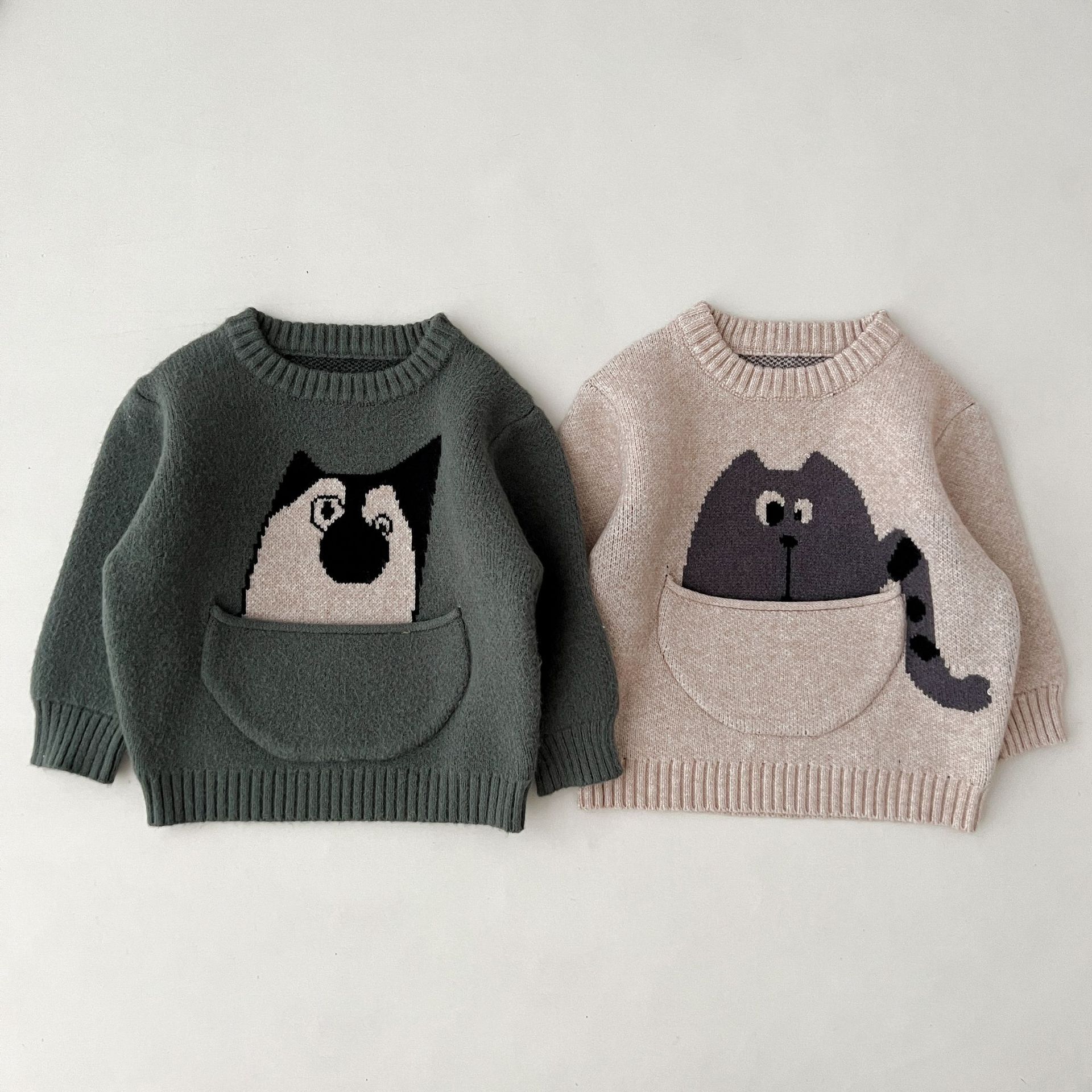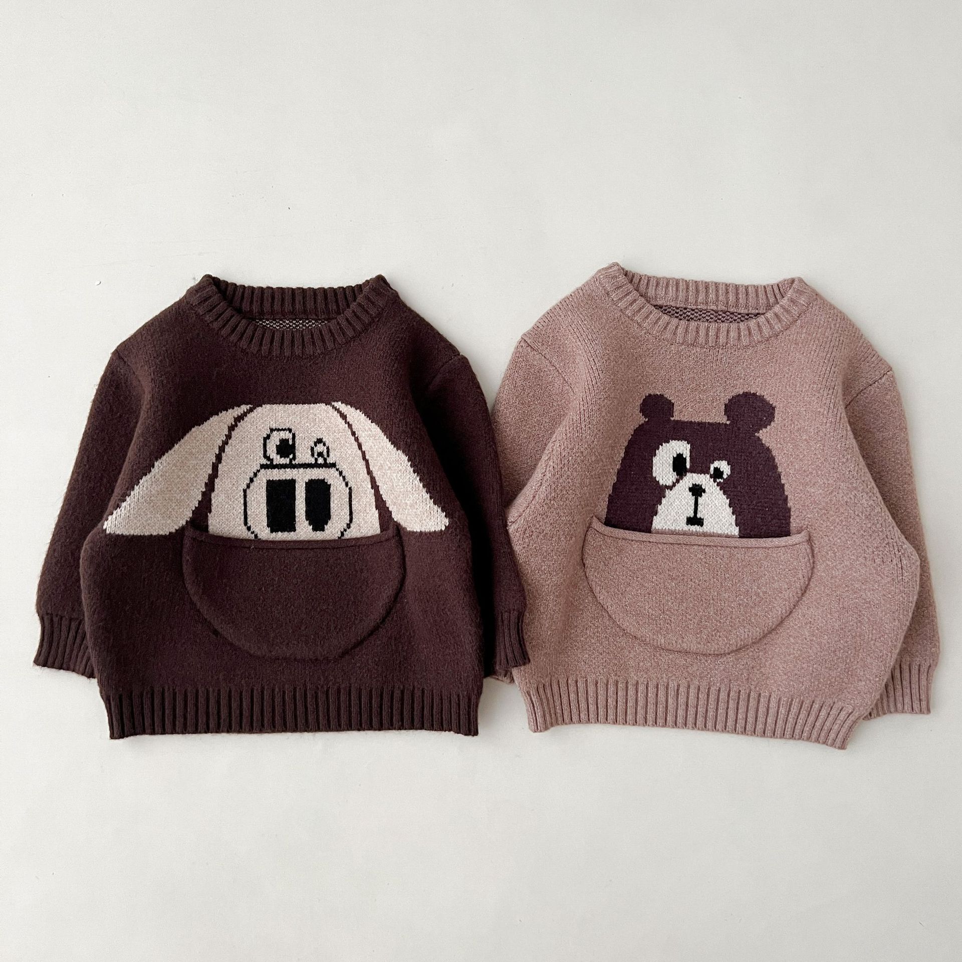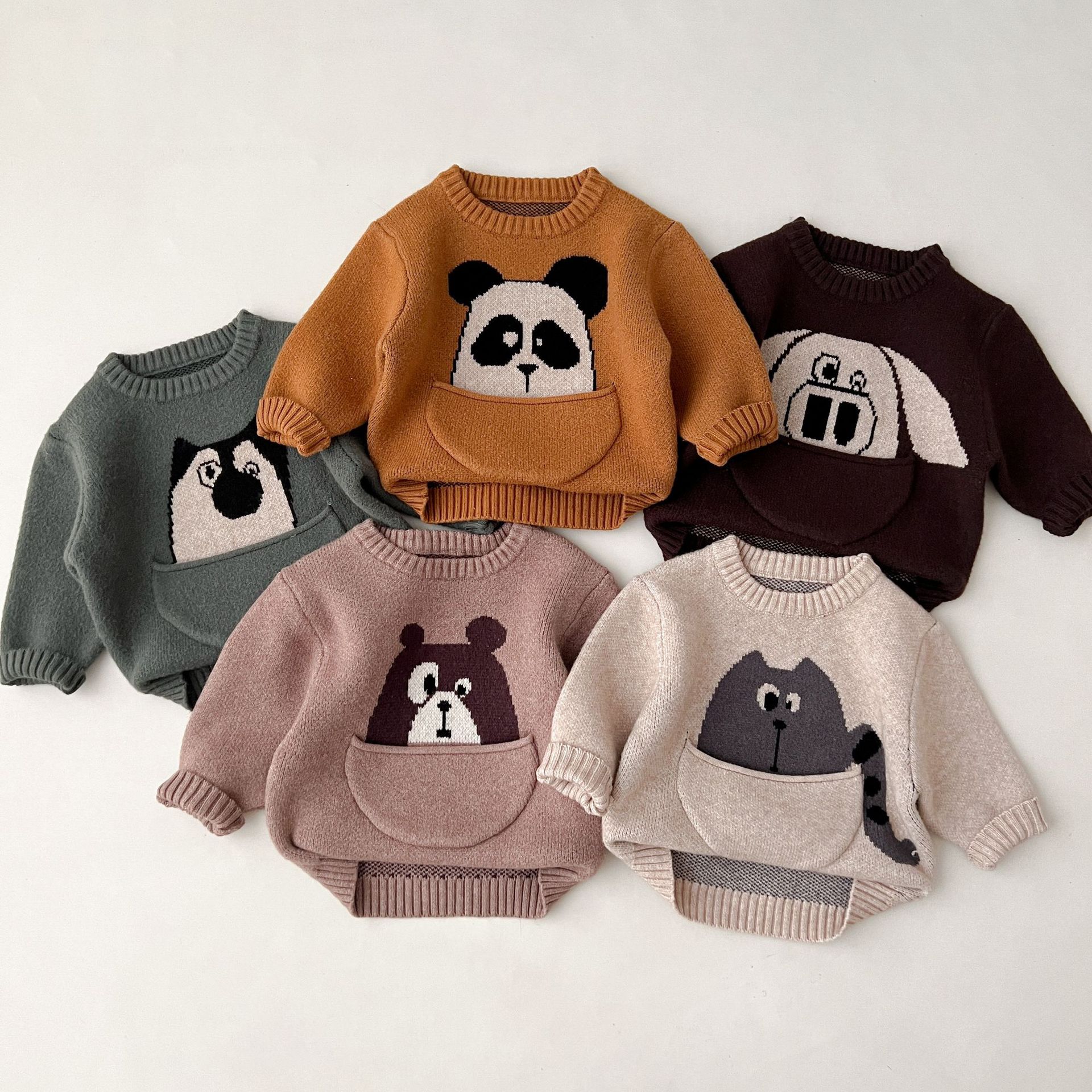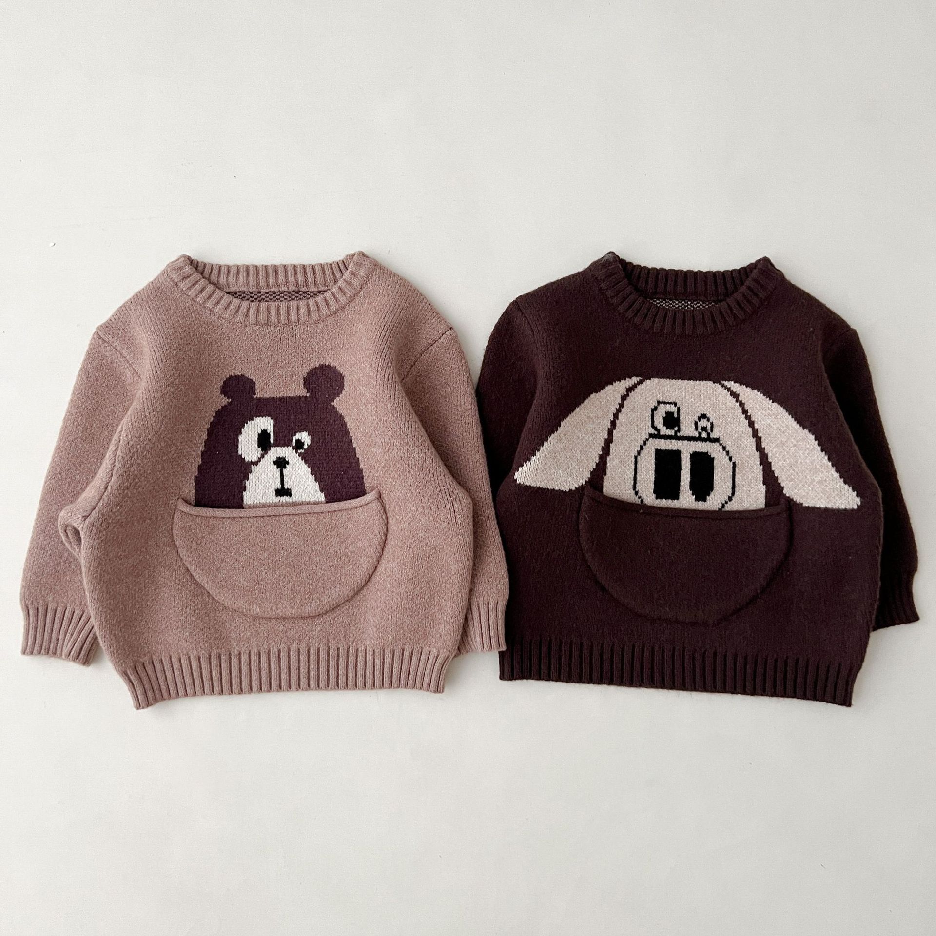 어린이 스웨터 봄 착용 한국 스타일 소년 소녀 유행 서양 스타일 만화 인쇄 니트웨어 느슨한 포켓 탑